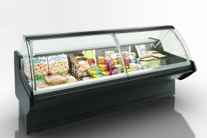 מעדניה בטמפרטורה נמוכה למוצרי קירור קפואים, עם אפשרות חיבור לפלאג-אין, עומק תצוגה של 790 מ"מ ומערכת גז לדחיפה והחזקת הזכוכית הקדמית.