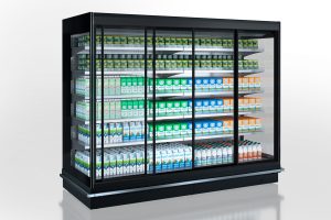 מקרר רב-קומתי עם דלתות חסכוניות באנרגיה אין-סופיות, המיועד לחנויות בכל פורמט. מוצר זה מחובר למערכת קירור מרחוק, מצויד בקירור דינמי, תאורה פנימית ב-LED, אווררים חסכוניים ודלתות הזזה.