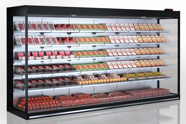 ארון מעגלות מרובה עם דיוד נמוך אידיאלי לחנויות מכל פורמט, המצויד במערכת קירור מרחוק, קירור דינמי, תאורת LED פנימית, מגירות נשלפות ומדפי רמות כפולות.