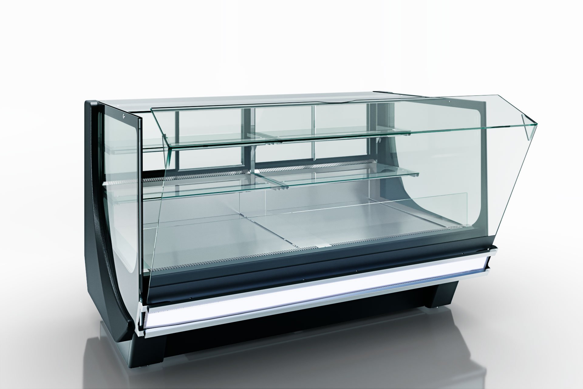 קירור מקצועי ומיוחד המיועד לקונדיטוריות, המשלב מערכת קירור מרחוק או אפשרות לחיבור פלג-אין, עם תצוגה מודרנית ופתרונות עיצוב מתקדמים.