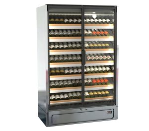 ארון קירור אנכי עם דלתות הפועל על גז קרור של פרופאן (R290), מותאם במיוחד להצגה ושמירה על יינות אדומים ולבנים. מתאים במיוחד לשטחים קטנים ולמסעדות. עשוי כולו נירוסטה ומצויד במדפים ניתנים להטיה עם מעצור עץ.