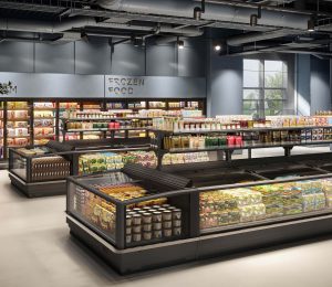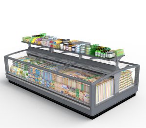 מקרר תעשייתי מסוג אי אופקי, עם יחידה חיצונית למוצרים קפואים. מאופיין בחלונות זכוכית גדולים להצגת מוצרים ברורה. מתאים לסופרמרקטים ולהיפרמרקטים עם דלתות זכוכית עקומות הזזה מודרניות. כמו כן, קיימת אפשרות להציג מוצרים באיזור תצוגה עליון עם מדפים.