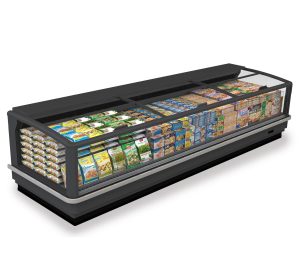 מקפיא תצוגה אופקי עם יחידה חיצונית, מותאם למוצרים קפואים, עם פאנלים גדולים ומכסים נעים מזכוכית לשמירה מיטבית וחיסכון באנרגיה. מתאים לסופרים והיפרמרקטים, מציע גמישות בתכנון הארגון בשטח.