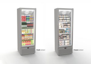 מקרר ורטיקלי עם דלת אחת, יחידה פנימית והפעלה באמצעות גז פרופאן (R290). מתאים לשימור והצגת גלידות, מוצרים קפואים, מוצרים טריים ומשקאות. אידיאלי לחנויות עם מחזור גבוה של מוצרים כמו תחנות דלק וחנויות מסורתיות קטנות. יתרון בנקודות קידום מכירות של סופרמרקטים והיפרמרקטים, קל לתחזוקה ולניקוי בזכות קונדנסור חופשי מתחזוקה.