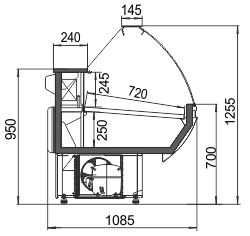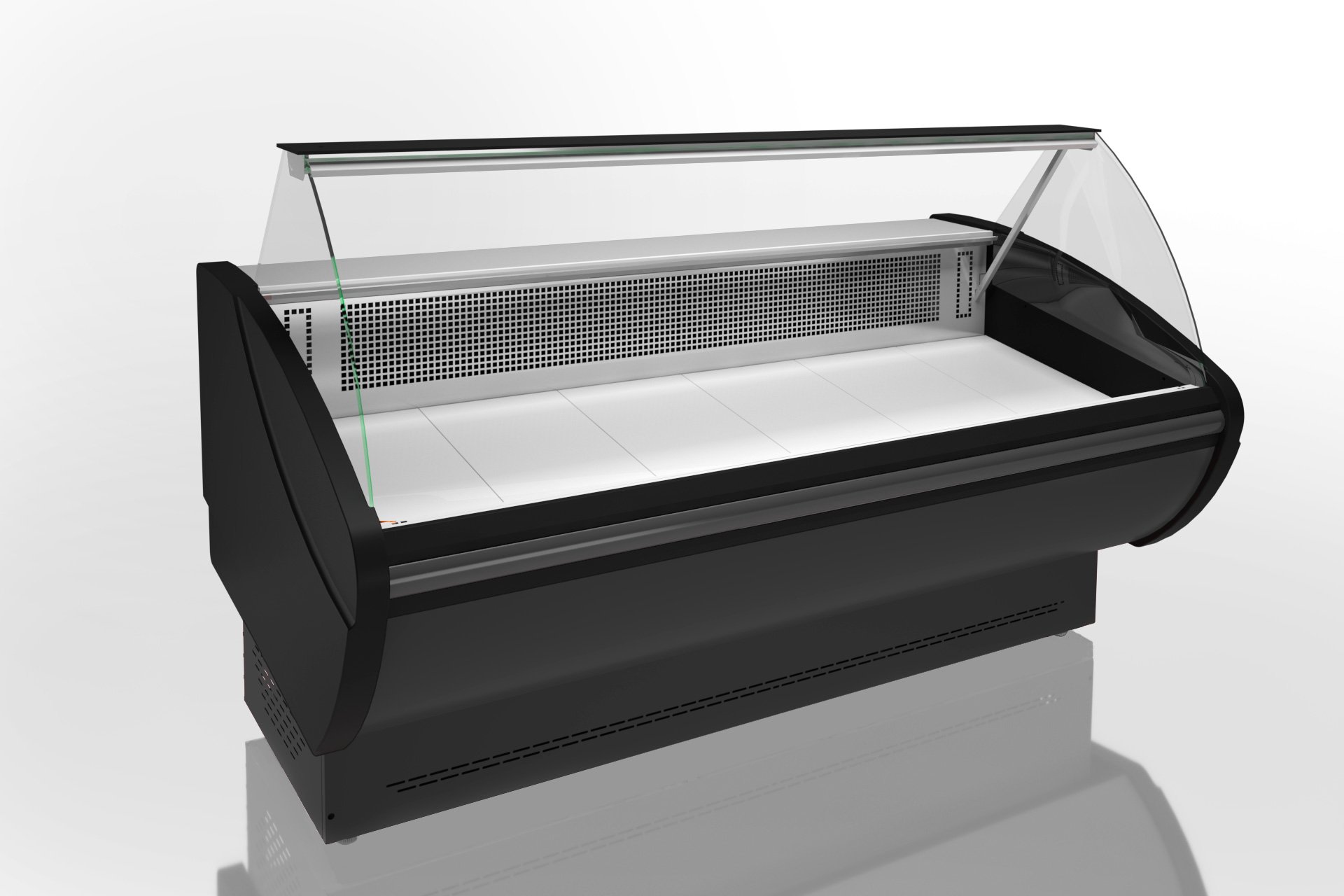 המוצר מתאים לחיבור פנימי. עומק תצוגת מוצרים 720 מ"מ, קירור סטטי, לוח חזיתי דוחף עם זכוכית ותא קירור נוסף.