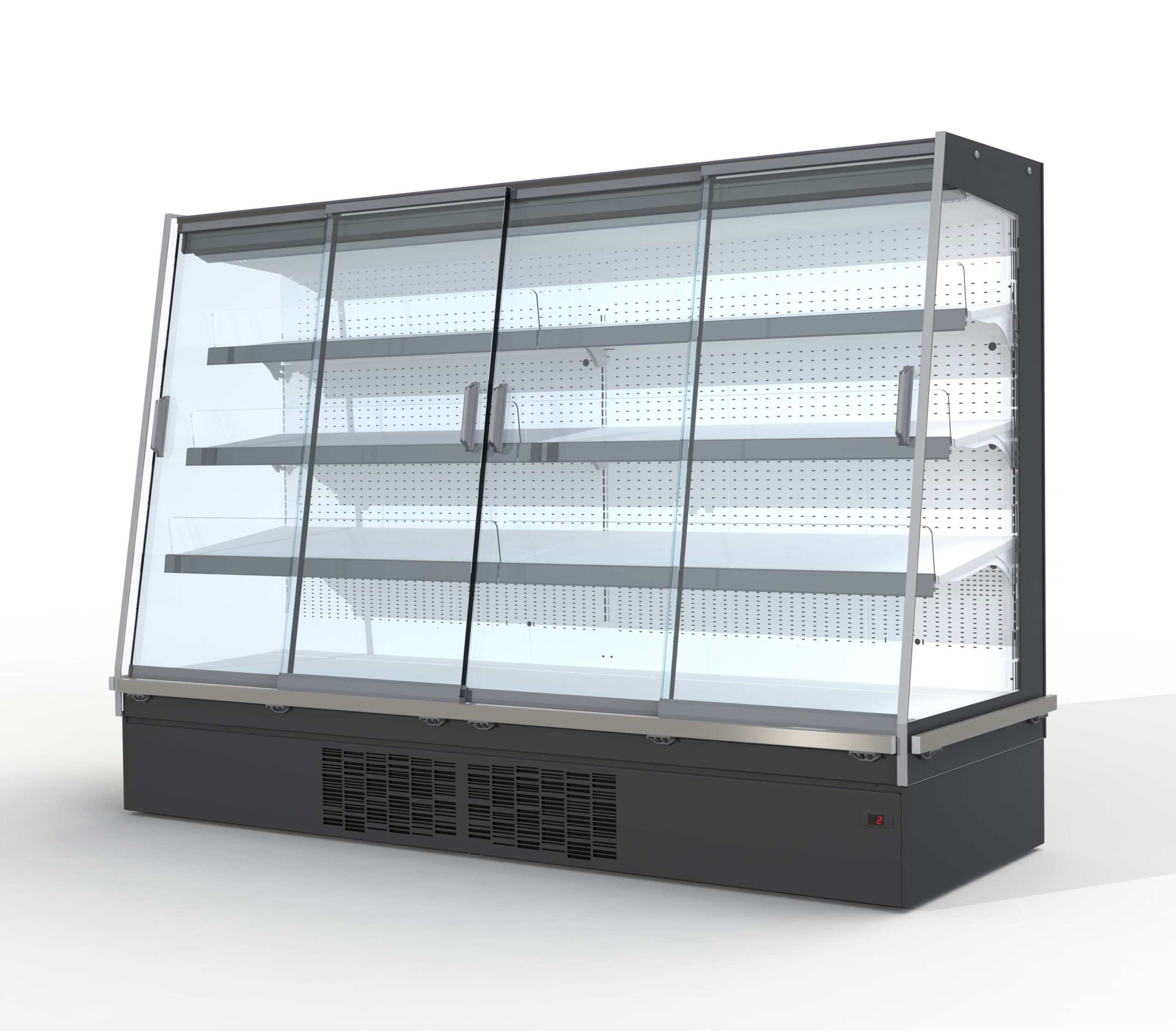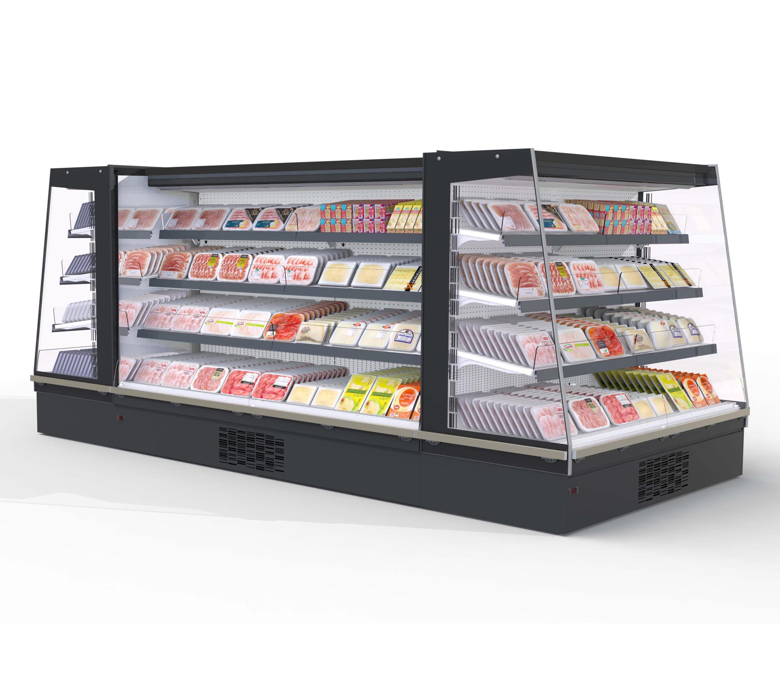 מקרר חצי אנכי עם יחידה מובנית לשימוש בגז מקורר פרופן (R290), מתאים במיוחד להצגת ושימור בשר מוכן, מעדנים, מוצרים חלביים ומשקאות. מתאים במיוחד לשילוב בתצורות איים במחלקת הבשר של החנות.