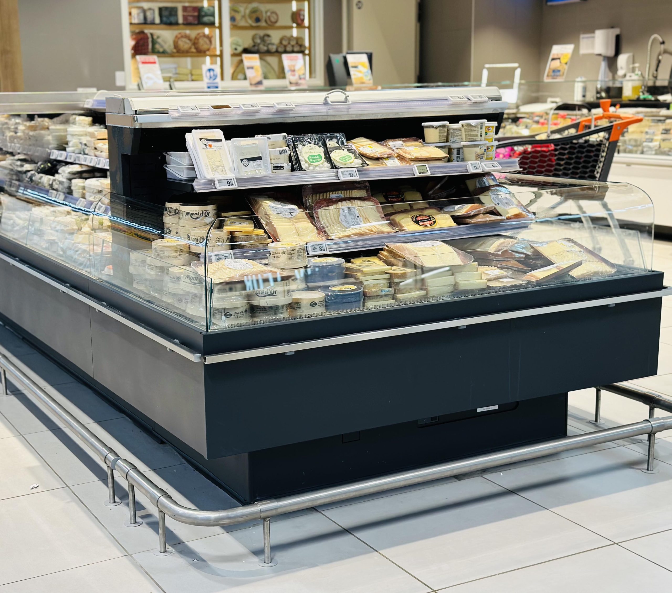 מקרר לתצוגה חצי-אנכי המיועד למוצרים טריים באריזות סגורות, בעל נפח תצוגה מרשים יחסית לשטחו הקטן, משתלב בעיצוב חללים שונים בזכות מימדיו הקומפקטיים ומעניק מראה אלגנטי.