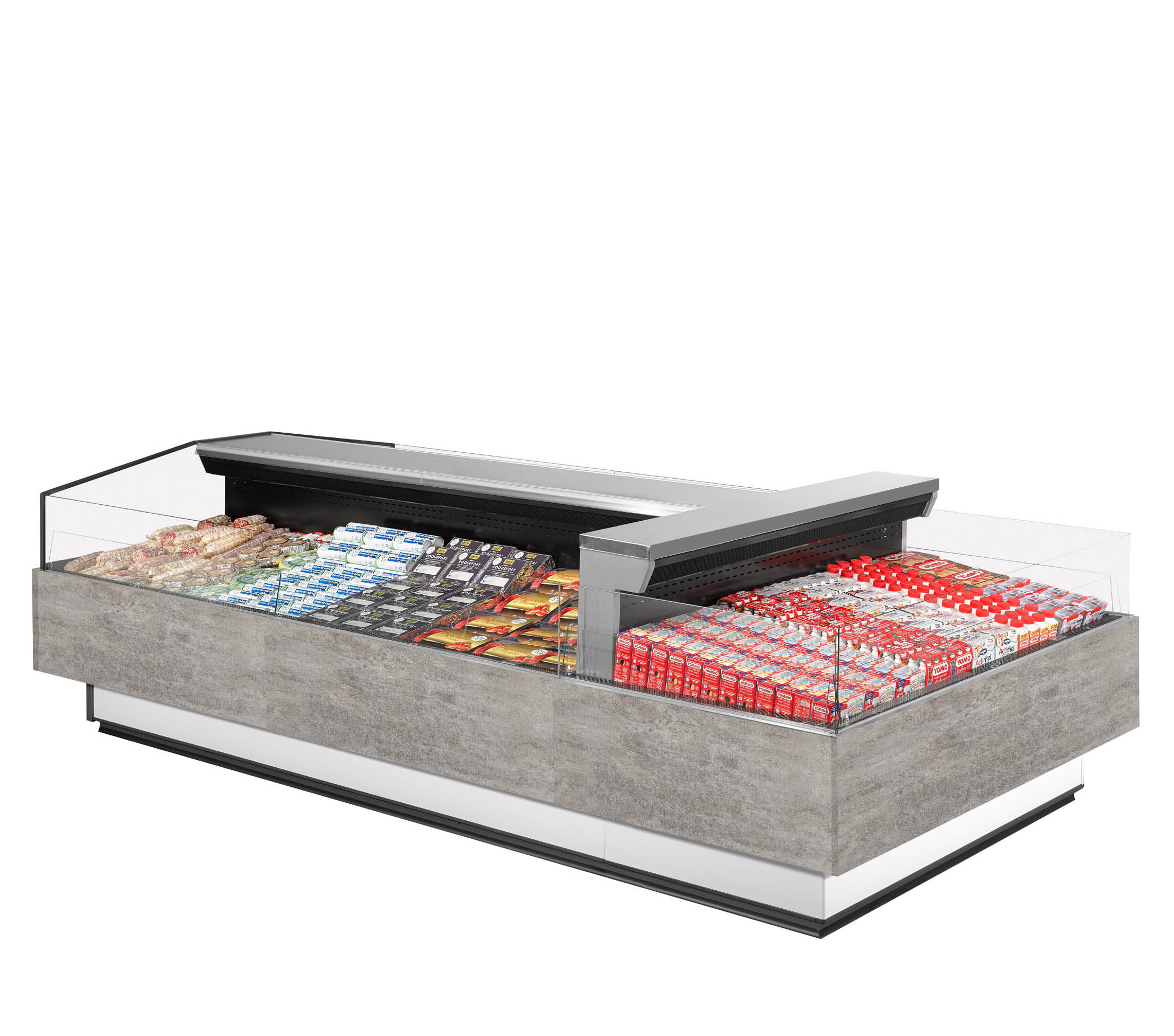 ויטרינה קירור לשירות עצמי ולמוצרים טריים באריזות מראש. מתאימה במיוחד לחנויות גדולות וקטנות בזכות עיצובה הקומפקטי והאלגנטי.