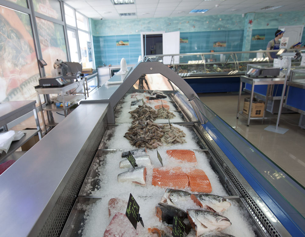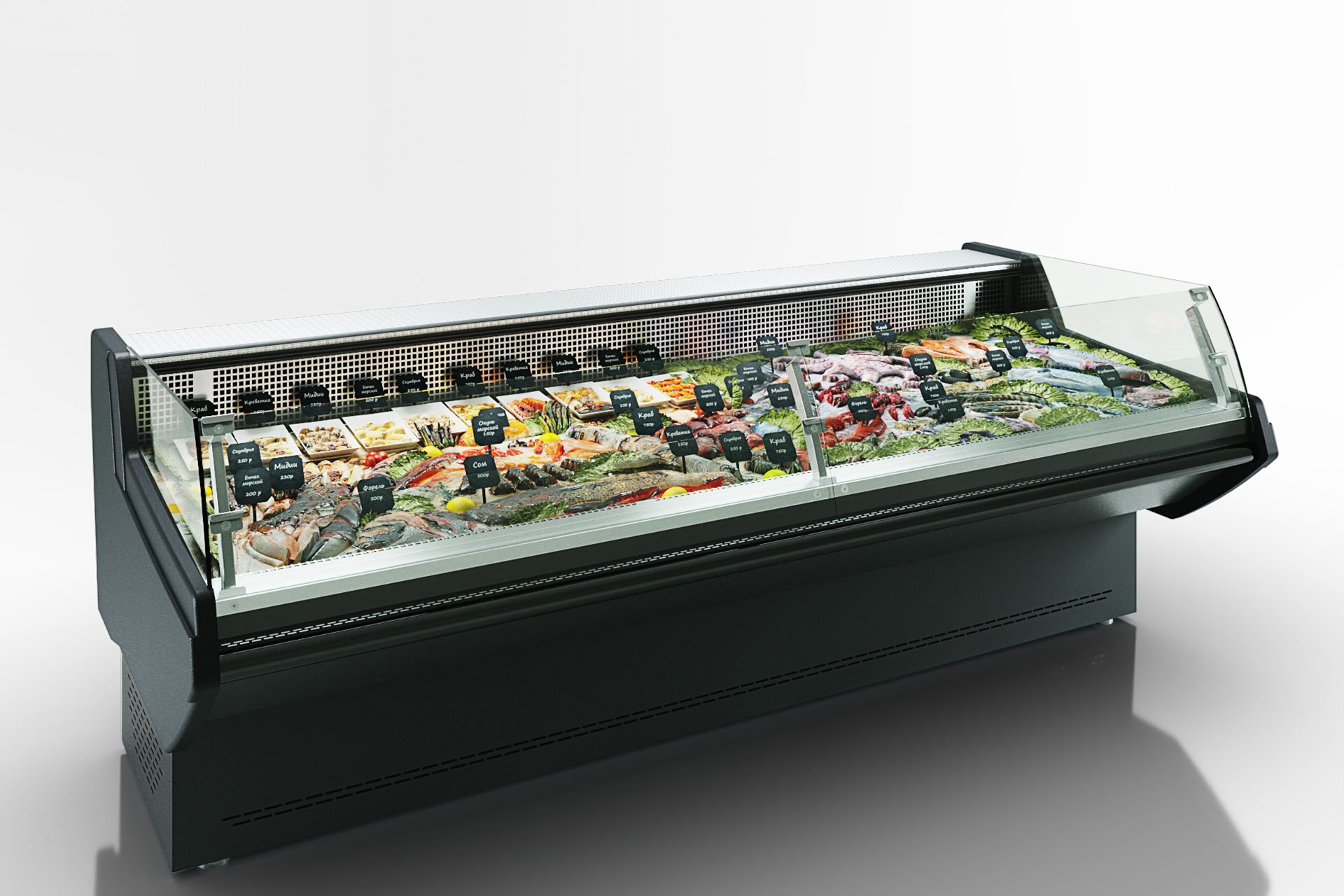 קירור ייעודי למכירת דגים טריים על קרח, זמין במודיפיקציה לשירות עצמי.
