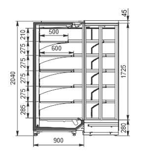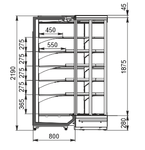 אלמנטים זוויתיים עם דלתות חסכוניות באנרגיה מדגם Indiana MV M מאפשרים בניית קווים בכל מורכבות. המוצר מתחבר למערכת קירור מרוחקת, מציע קירור דינמי ותאורת LED פנימית.