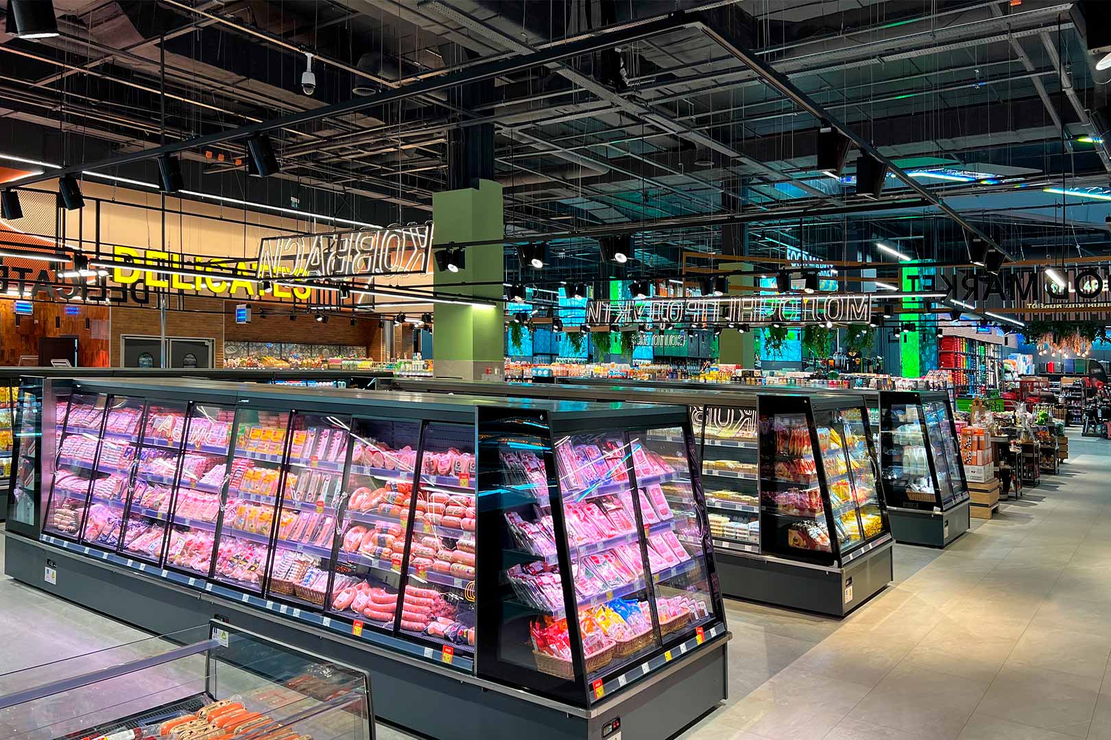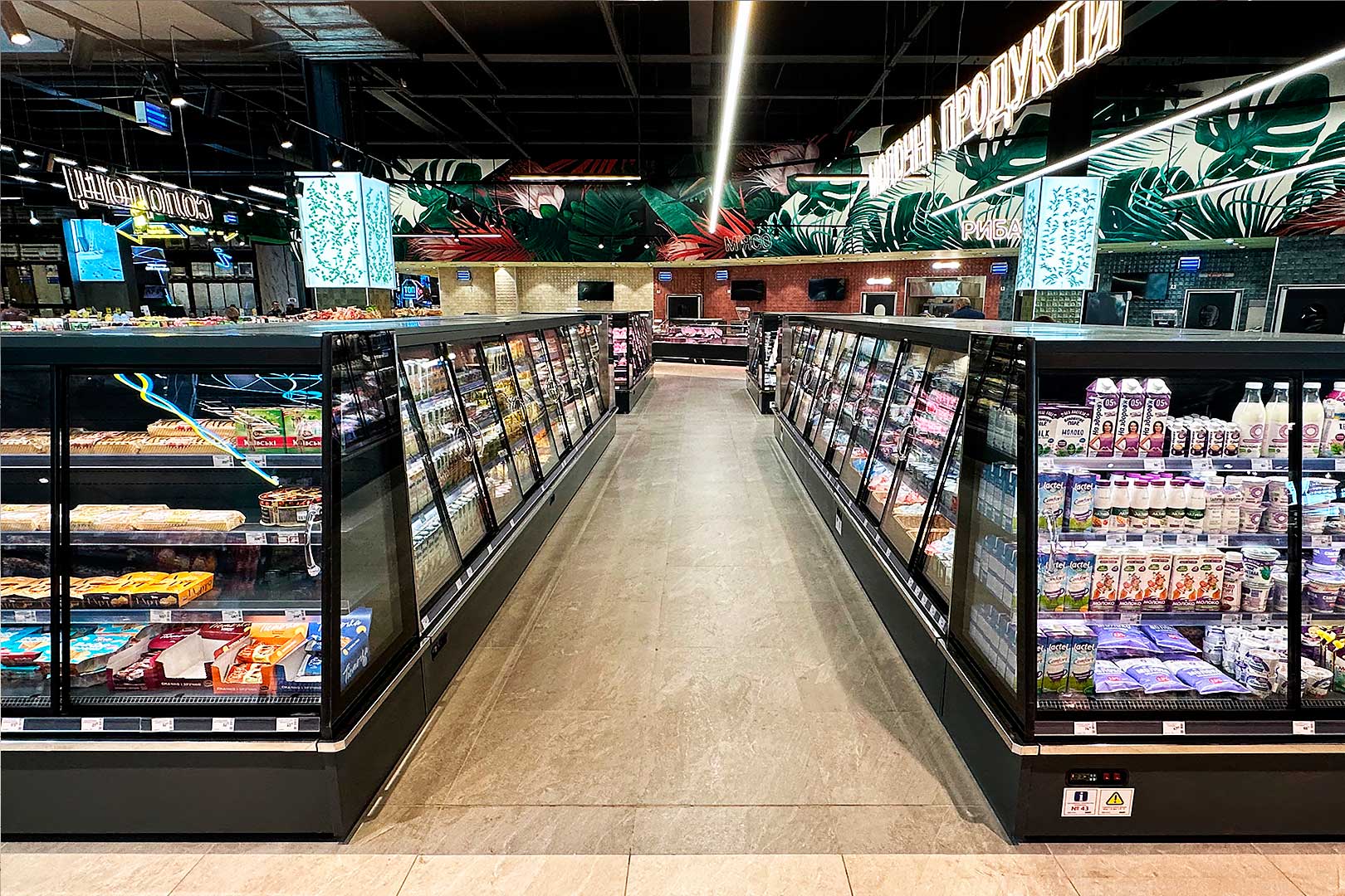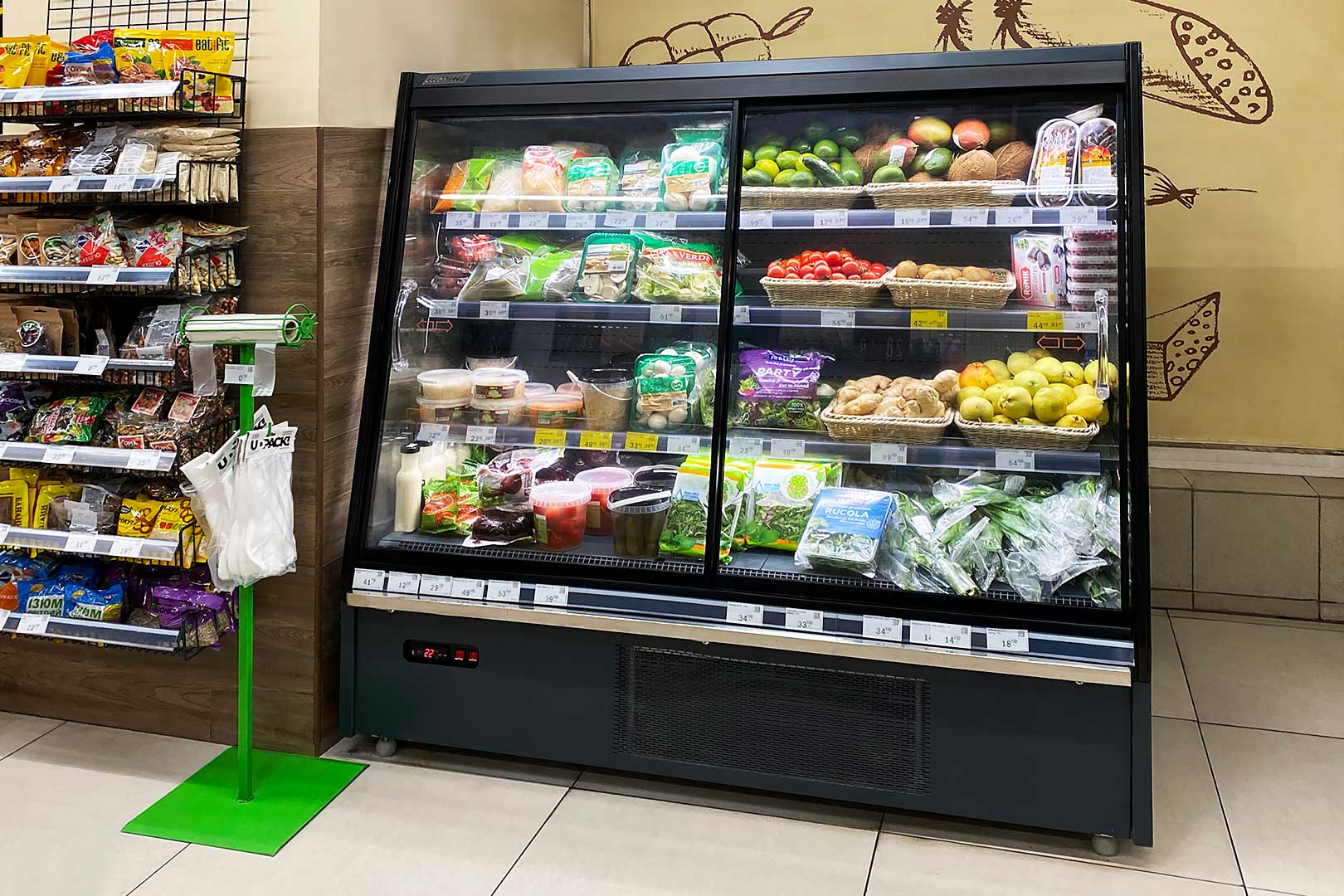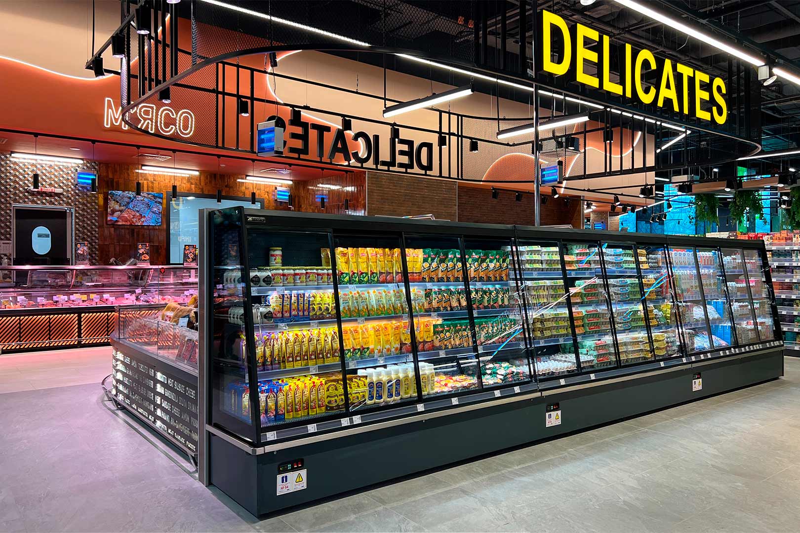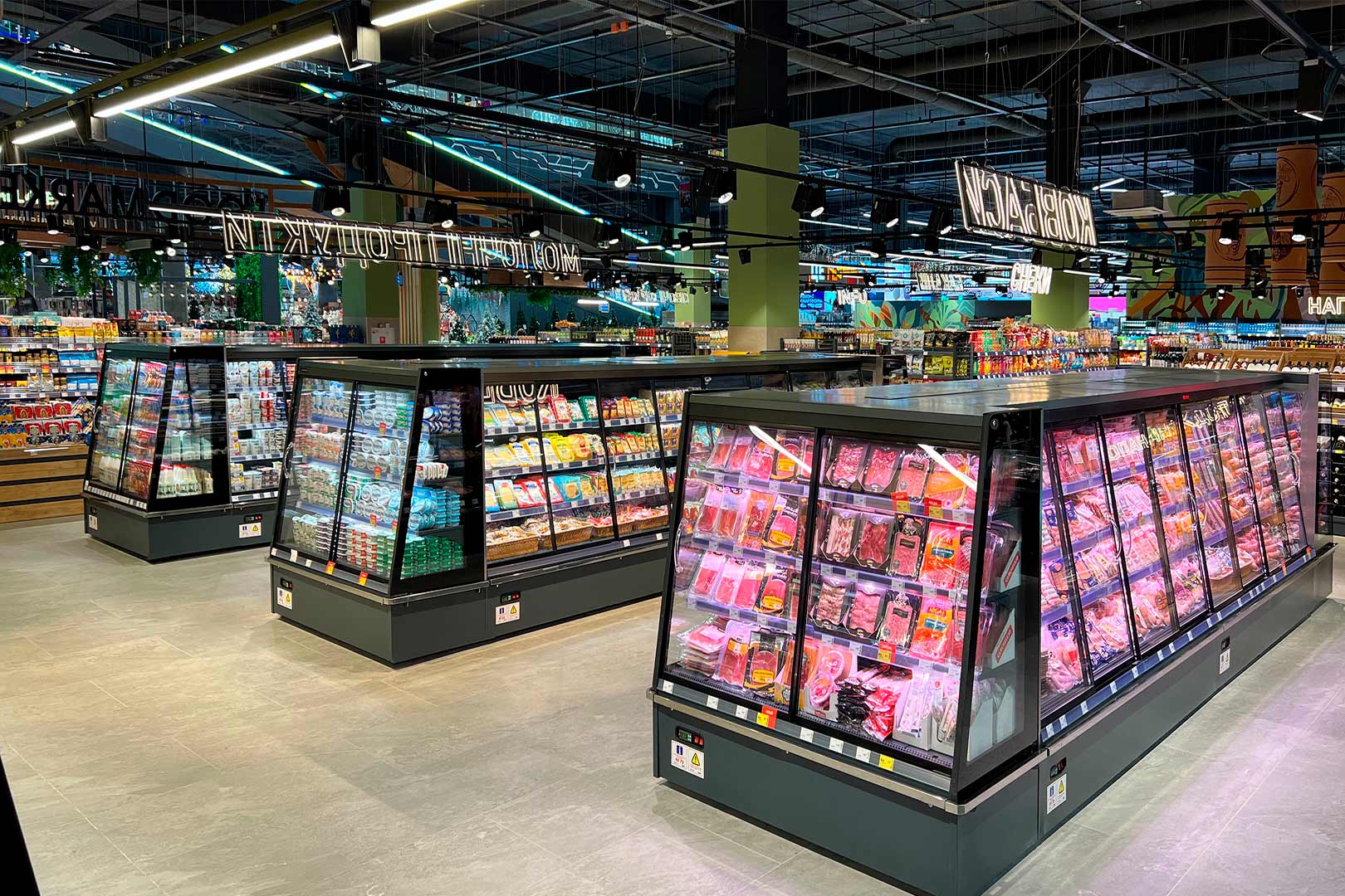 קינטרים חצי-אנכיים המתאימים לחנויות מכל פורמט. כולל קירור דינמי, דלתות מחליקות ומערכת מדפים בעומק משתנה.