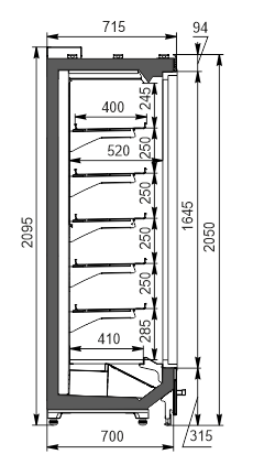 מקרר רב-שכבתי לטמפרטורות נמוכות עם דלתות חסכוניות באנרגיה למוצרי קפוא מארוזים. המוצר מתחבר למערכת קירור חיצונית ומספק קירור דינמי, תא פנים עם תאורת לד ומאווררים חסכוניים באנרגיה.