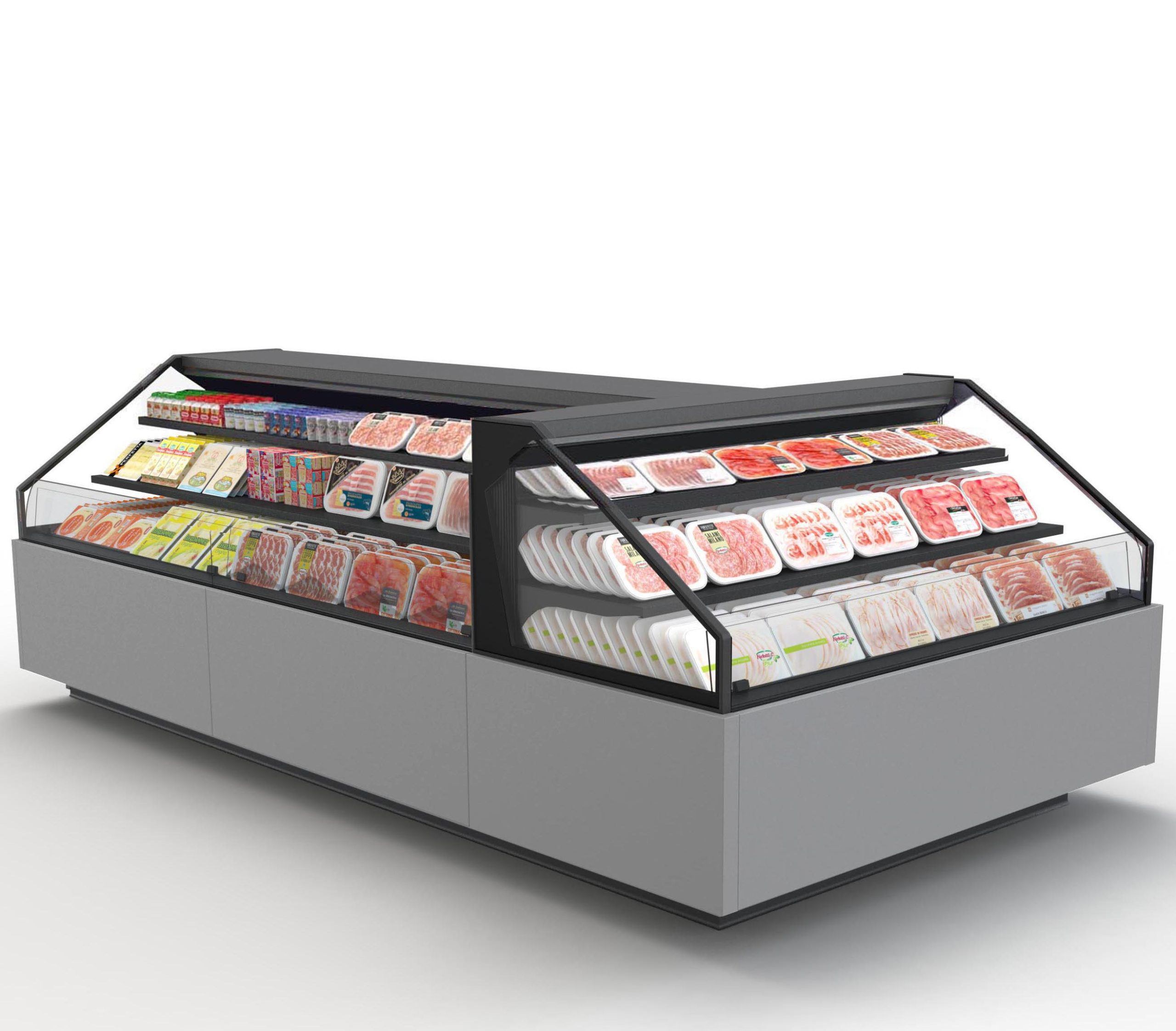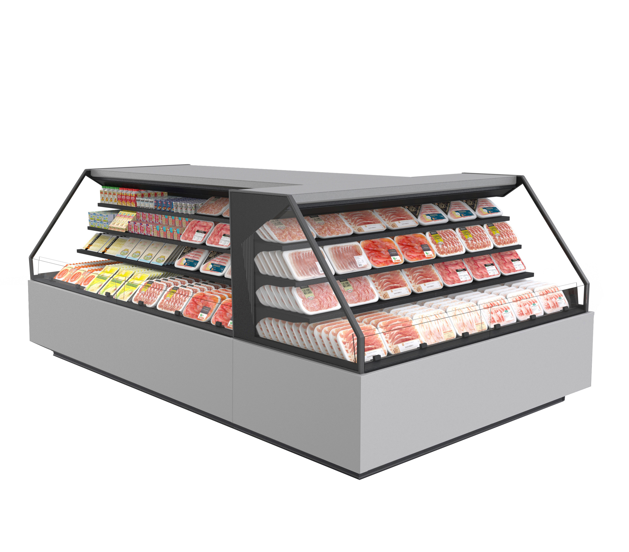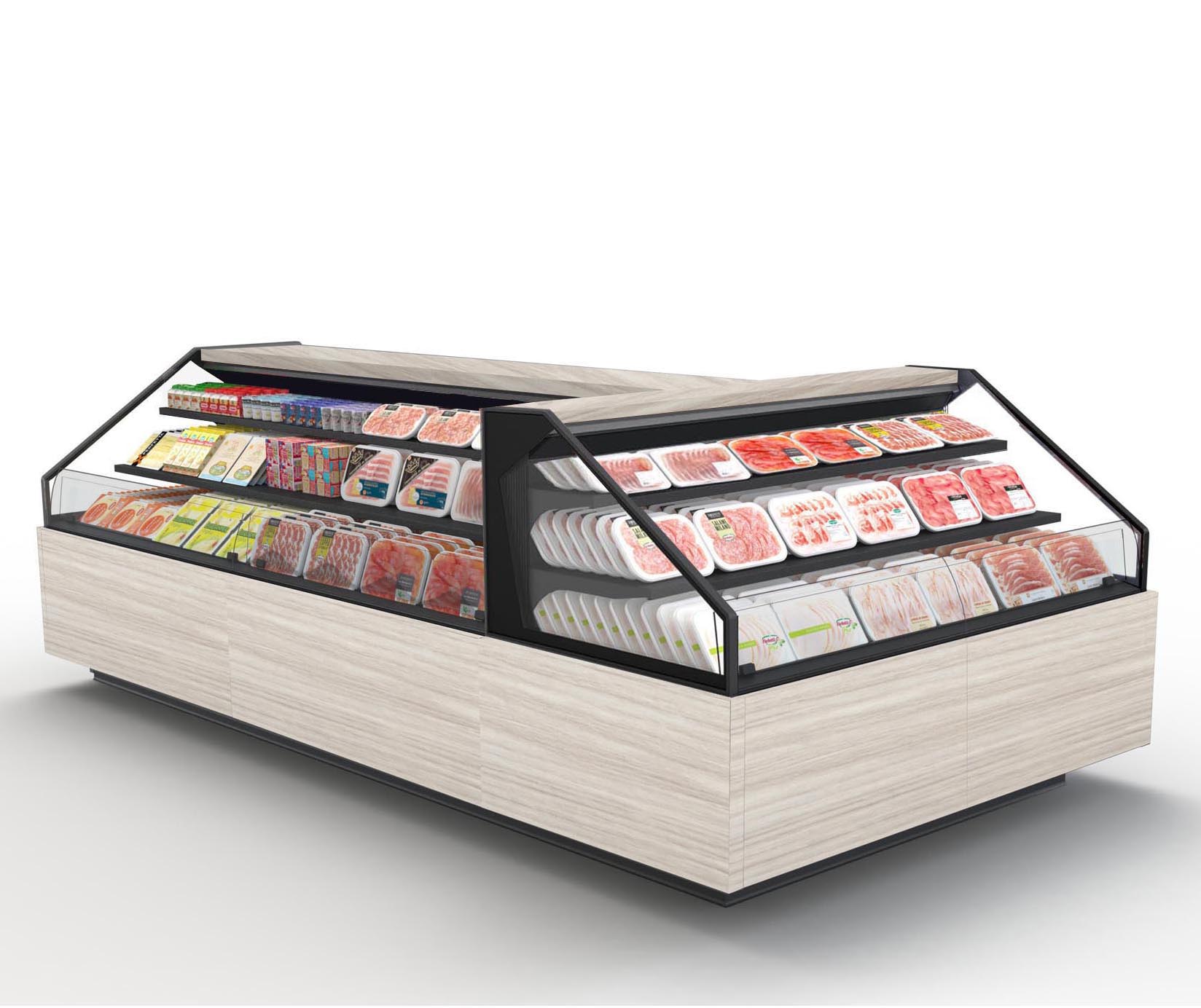 ארון קירור פתוח לשימושים סופרמרקטיים והיפרמרקטיים, מתאים למוצרים טריים ארוזים מראש, כולל יחידת קירור חיצונית. מספק גמישות בפריסת שטח התצוגה והקמה של איים.