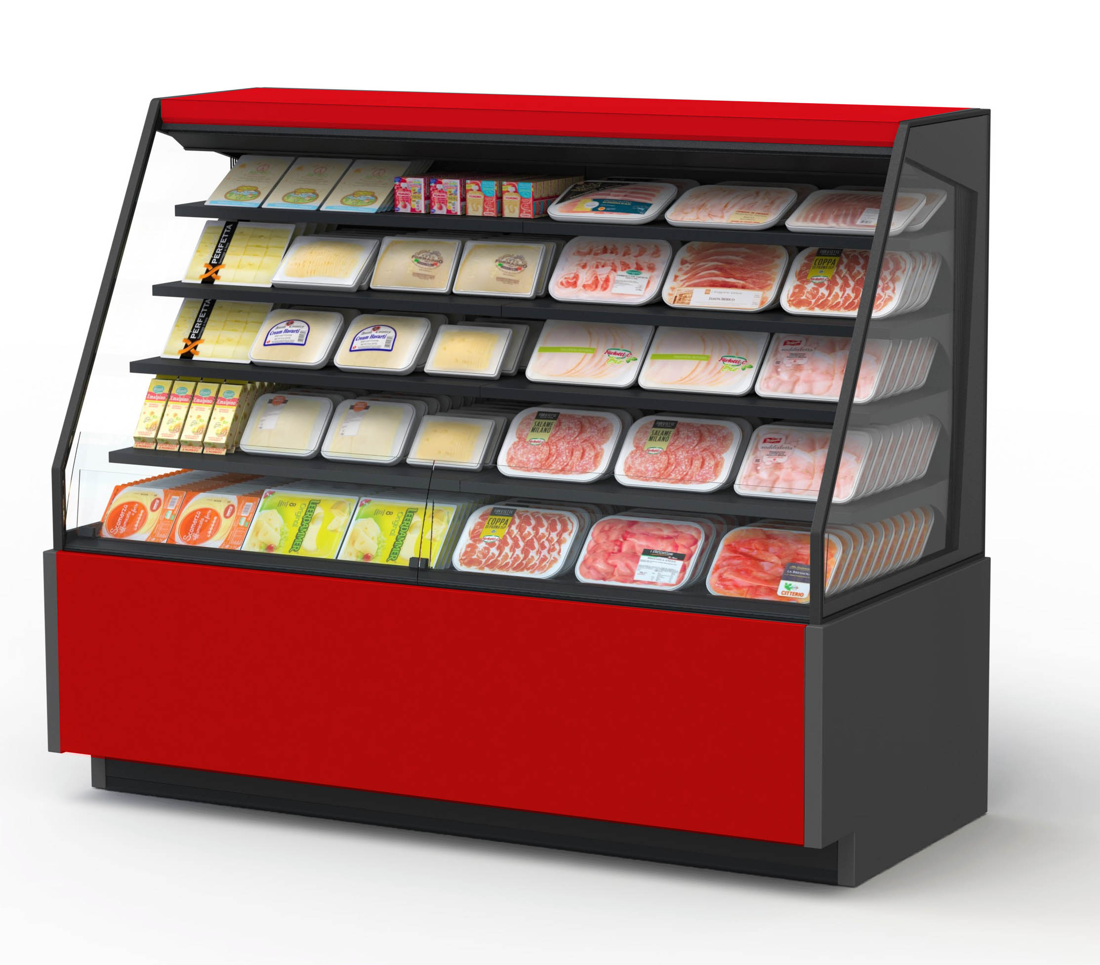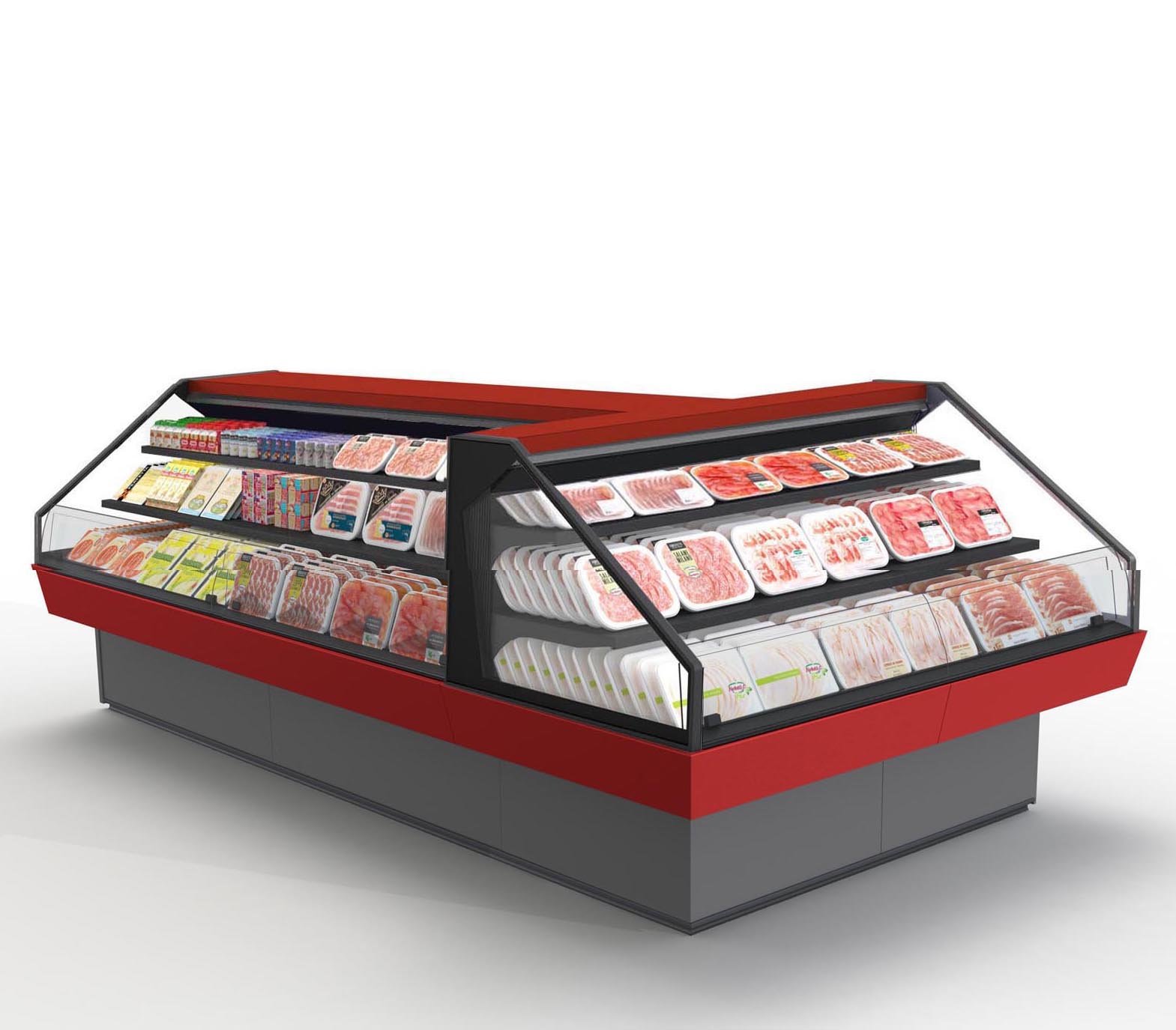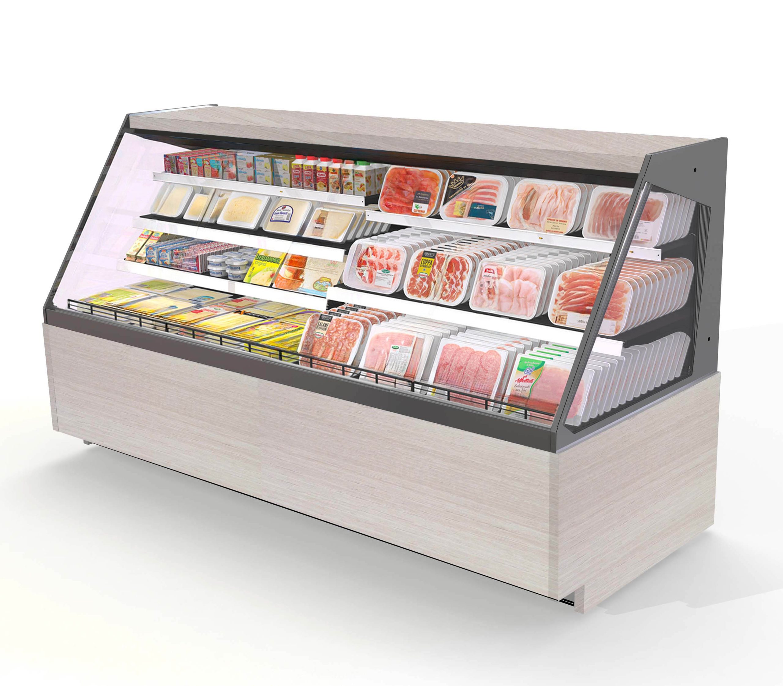 ארון קירור פתוח לשימושים סופרמרקטיים והיפרמרקטיים, מתאים למוצרים טריים ארוזים מראש, כולל יחידת קירור חיצונית. מספק גמישות בפריסת שטח התצוגה והקמה של איים.
