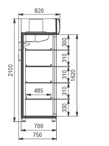 עומק מדף (מ"מ) 485