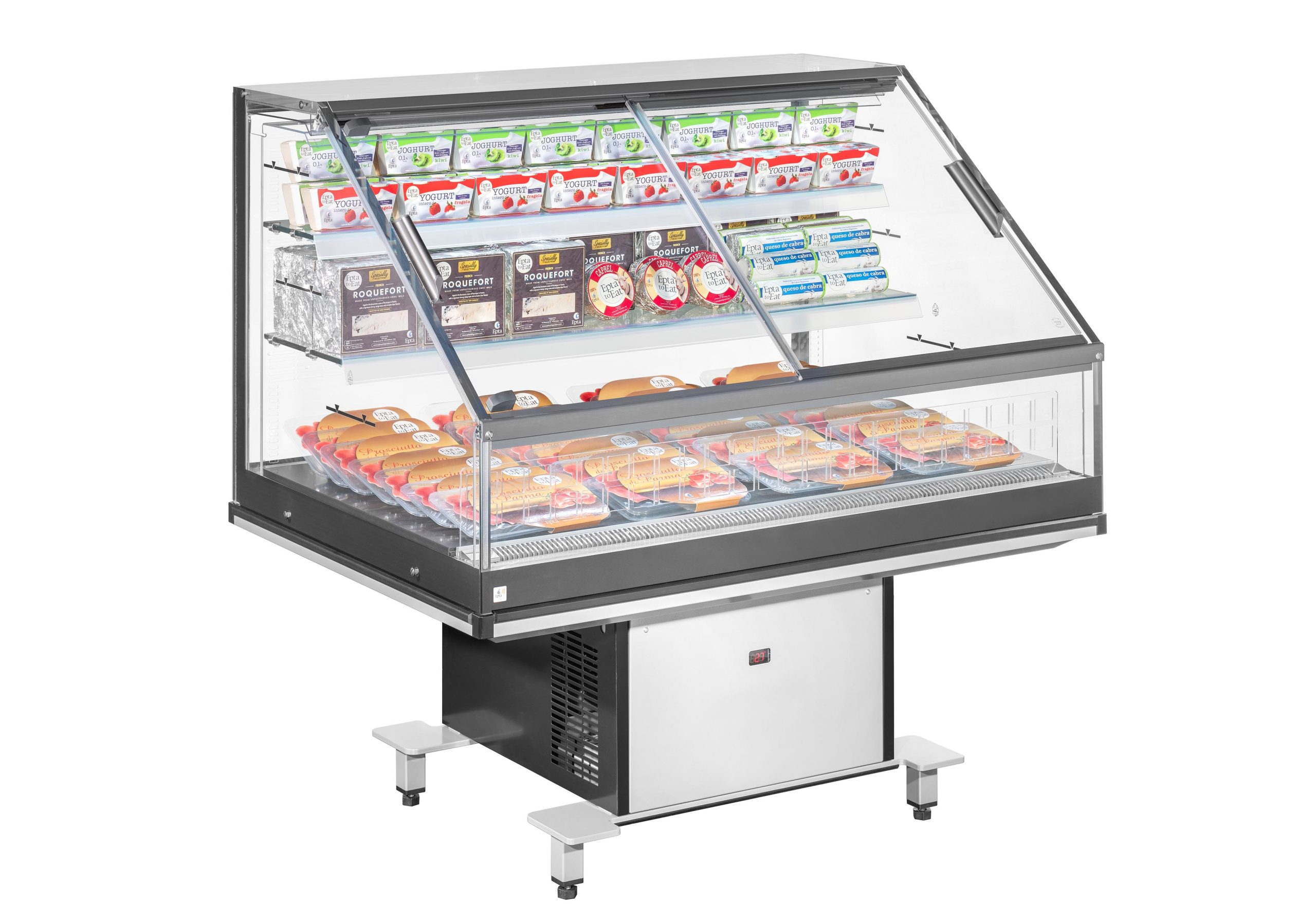המקרר זמין באותן מידות כמו הגרסה הפתוחה, ומצוייד במנגנוני הזזה ישרים עם ידיות ארגונומיות, וכולל זכוכית חד-שכבתית להבטחת שקיפות מרבית ותצוגה מוארת וברורה של המוצרים. מתאים לשימוש בכל סוגי החנויות, ממינימרקטים ועד היפרמרקטים, אידיאלי לשימור מוצרים טריים וארוזים מראש.