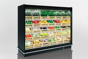 מקרר רב-קירות למכירת ירקות ופירות עם מערכת קירור מרוחקת, קירור דינמי ותאורה פנימית LED. המוצר כולל מאווררים חסכוניים באנרגיה, וילון אוויר כפול ללא מנועים נוספים ומראה מוטה.