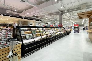 קירור חצי אנכי עבור חנויות בכל פורמט. המוצר תומך בחיבור פנימי ומציע קירור דינמי ואוורור חסכוני באנרגיה, עם דלתות מחליקה ומערכת מדפים בעומקים משתנים.