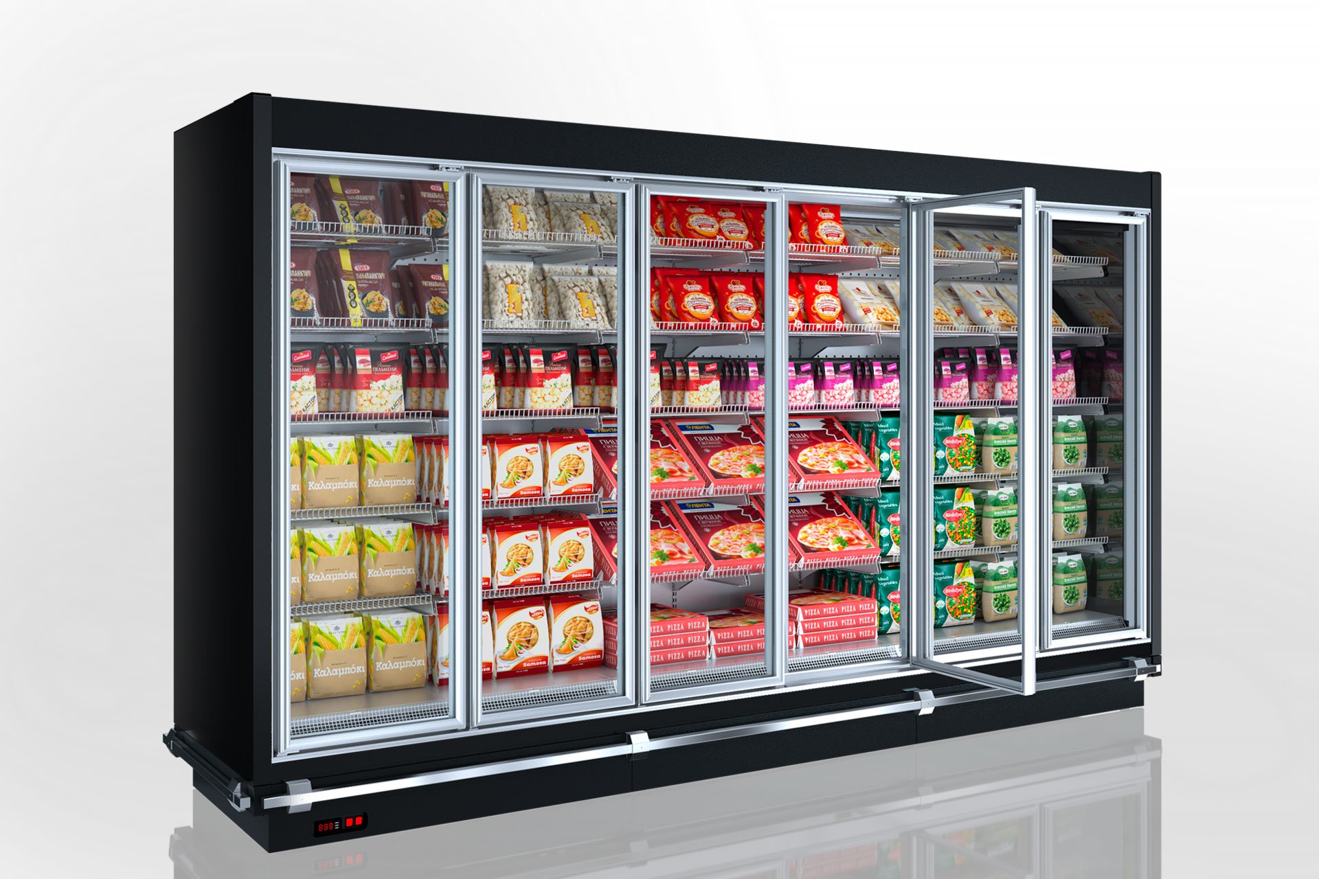 מקרר לטמפרטורות נמוכות עם דלתות חסכוניות לאנרגיה, המיועד למוצרי מזון קפואים. כולל מערכת קירור חיצונית עם קירור דינמי, תאורה LED פנימית ומאווררים חסכוניים.