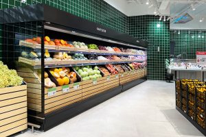 מקרר חלביה עם לוח הרמה למילוי סחורה בקלות. המקרר מחובר למערכת קירור חיצונית ומציע קירור דינמי ותאורה פנימית עם נורת לד.