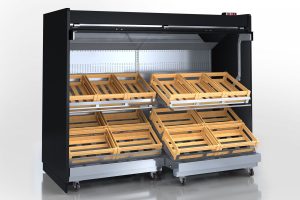 מקרר רב-קומתי למכירות ירקות ופירות. מתחבר למערכת קירור מרוחקת. קירור דינמי. תא פנימי עם תאורה LED. פלטת גלגול.