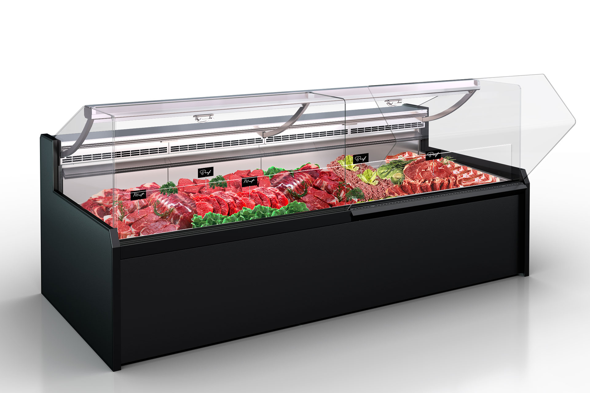 המעדניה עובדת על מקור קירור עקיף – פרופילן גליקול. היא מצוידת ביחידת ממסר R290 פנימית לקירור בפרופילן גליקול, ושומרת על טמפרטורה -1…+2 °C עם לחות גבוהה וזרימת אוויר מינימלית.
