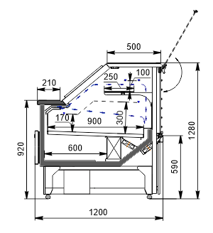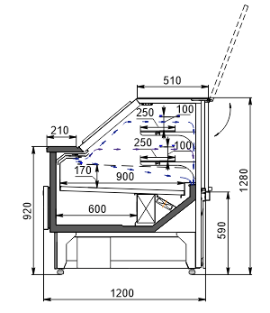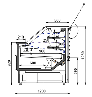 מקרר מעדניה עם מערכת קירור דינמית, גרסת פלאג-אין, ועומק תצוגה של עד 900 מ״מ. כולל מדף מקרר נוסף לשמירת הטמפרטורה על (+2…+4°C) ותאורת LED.