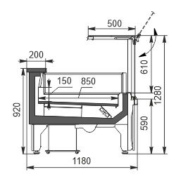 קירור בטמפרטורות נמוכות למוצרים קפואים, מתאים לשקע חשמלי, עומק הצגה של 850 מ"מ, קירור דינמי, והרמה ואחיזה של הזכוכית הקדמית בעזרת מערכת גז.