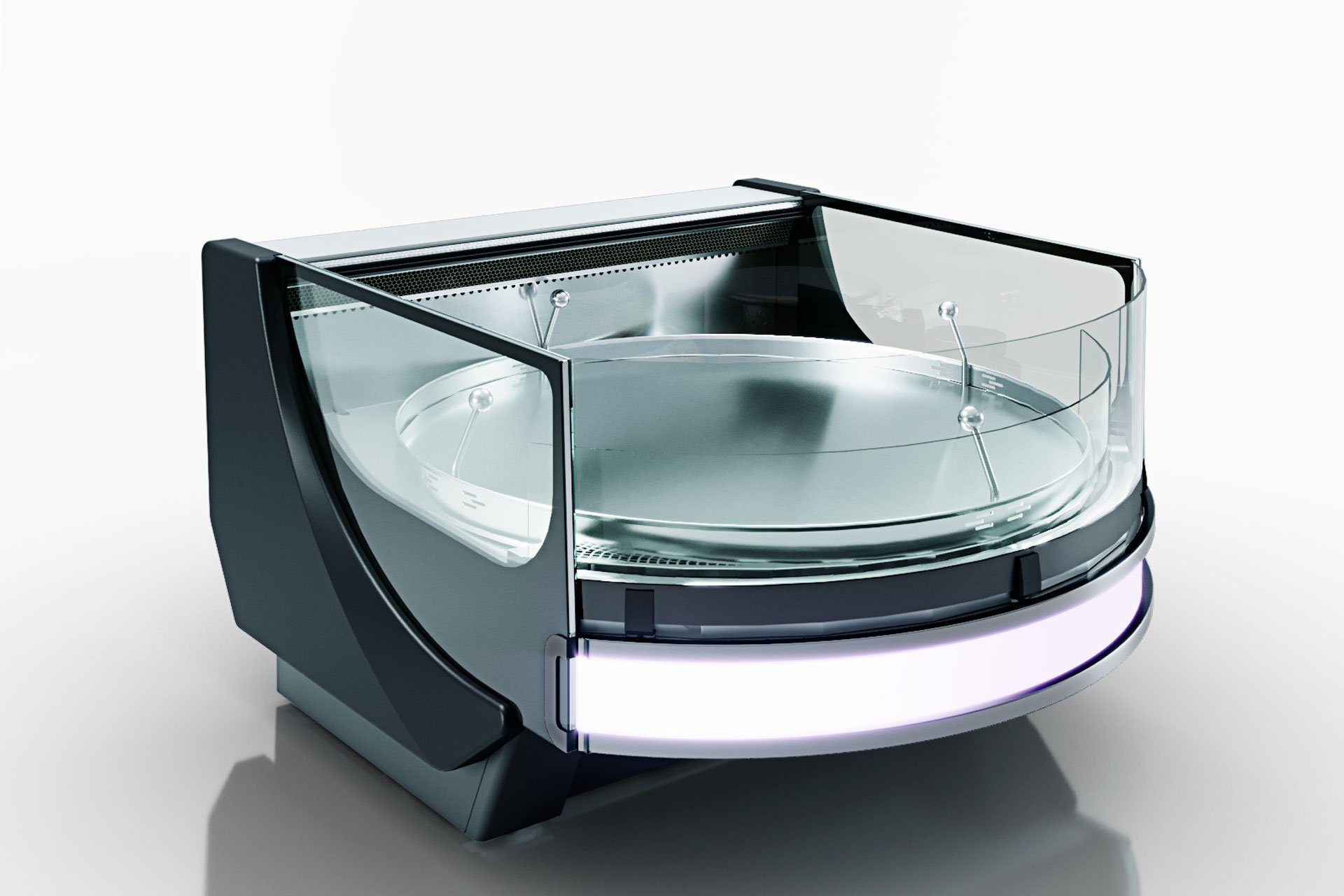 קירור מעדניה עם תוף מסתובב המיועד לשיווק מנות מעדנייה; המכשיר מתחבר למערכת קירור מרוחקת או מתאים להתקנה פנימית, מצויד בקירור דינמי ומאווררים חסכוניים באנרגיה.