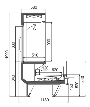מנועד להצגת בשר טרי על ווים, משלב חיבור למערכת קירור מרחוק עם אפשרות חיבור פנימי למיכל עליון. המתקן מספק קירור סטטי במיכל העליון וקירור דינמי בחלק התצוגה, ומצויד בתאורה LED למיכל הפנימי.