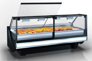 בקר מיוחד למנות חמות. שימור טמפרטורה עם אדים חמים ואזור עבודה מנירוסטה ואמבט פנימי.