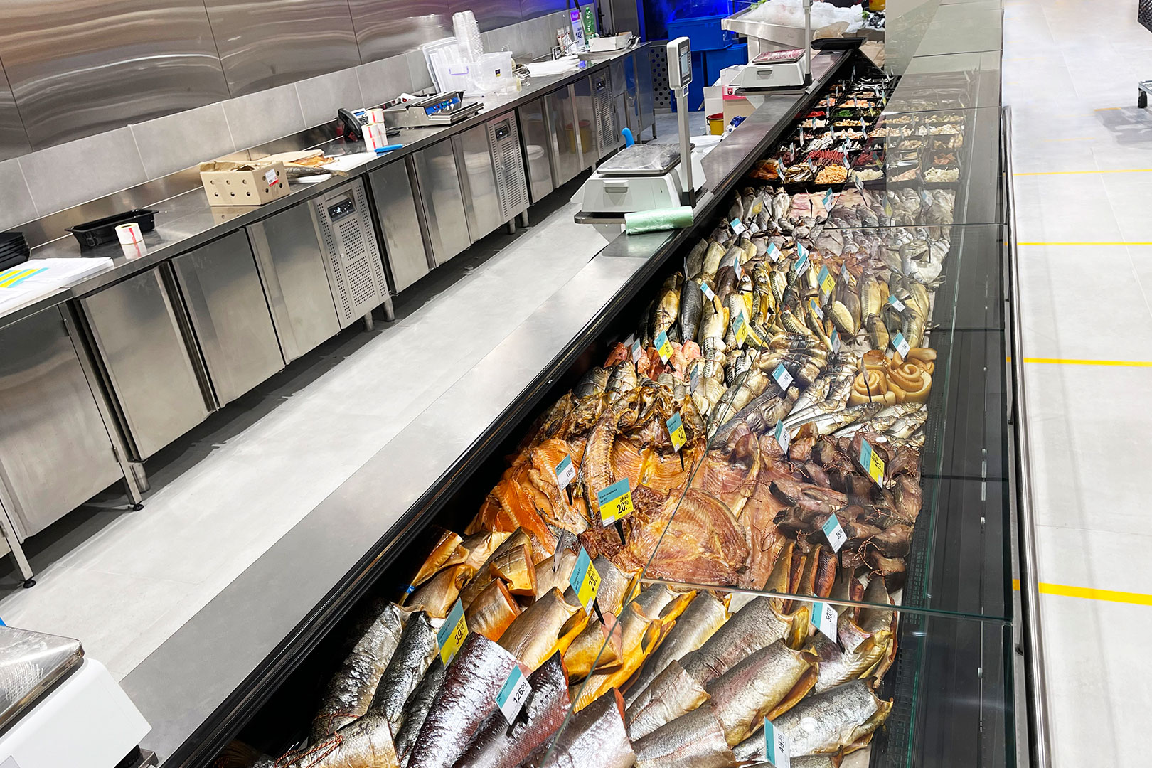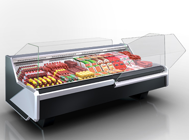 מקרר מעדניה עם זכוכית פנורמית לתצוגה מיטבית של הסחורה, עם אפשרות לבחירה בין גרסת deli OS וסגנון self. המוצר מחובר למערכת קירור חיצונית עם תכונות קירור דינמיות ואפקטים אנרגטיים מתקדמים.