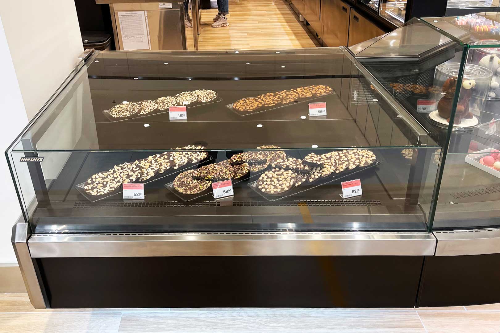 מציג קונטר מתמחה לשוקולד המתחבר למערכת קירור חיצונית או להתקנה פנימית. מכיל מגש נשלף לחלק התצוגה, קירור דינמי ומאווררים חסכוניים באנרגיה.