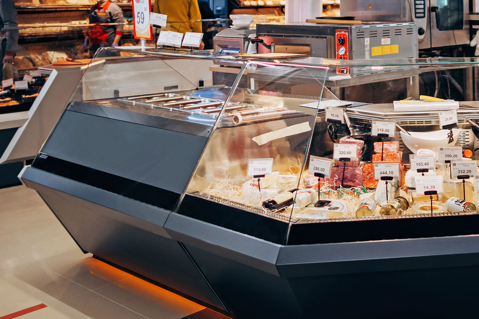 דליית סושי ופיצה מתקדמת עם מערכת קירור מרוחקת, קירור דינמי ועיצוב מיוחד הכולל זכוכית קדמית דוחפת ואזור עבודה מנירוסטה.