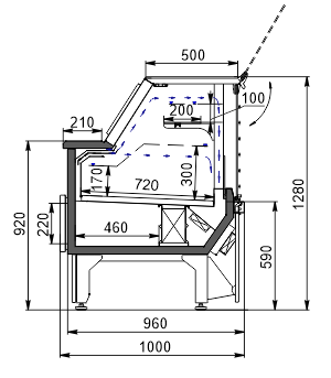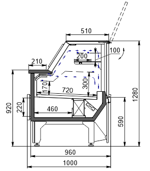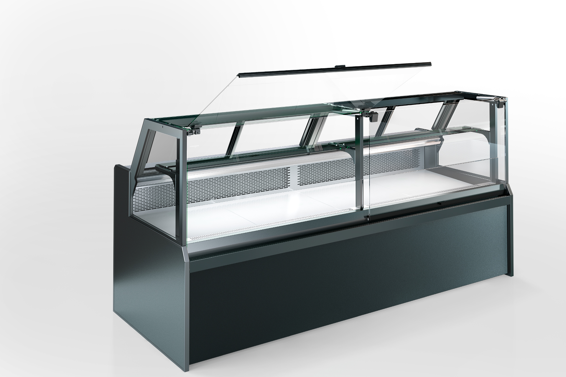 מדף מעדניה עם גובה טעינה מוגבר עד 300 מ"מ, המאופיין במערכת אוורור משופרת ותצוגה אופטימלית למוצרים.