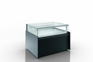 קונטר למוצרי קונדיטוריה עם חיבור פנימי, עומק תצוגה של 700 מ"מ, מגש תצוגה יוצא, קירור דינמי וזכוכית נשלפת.