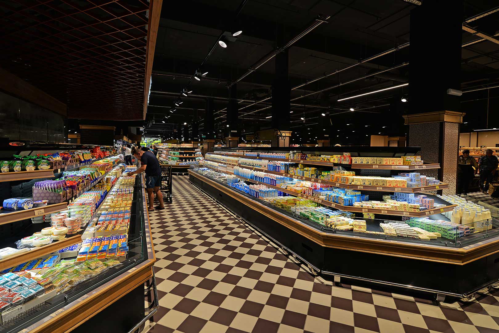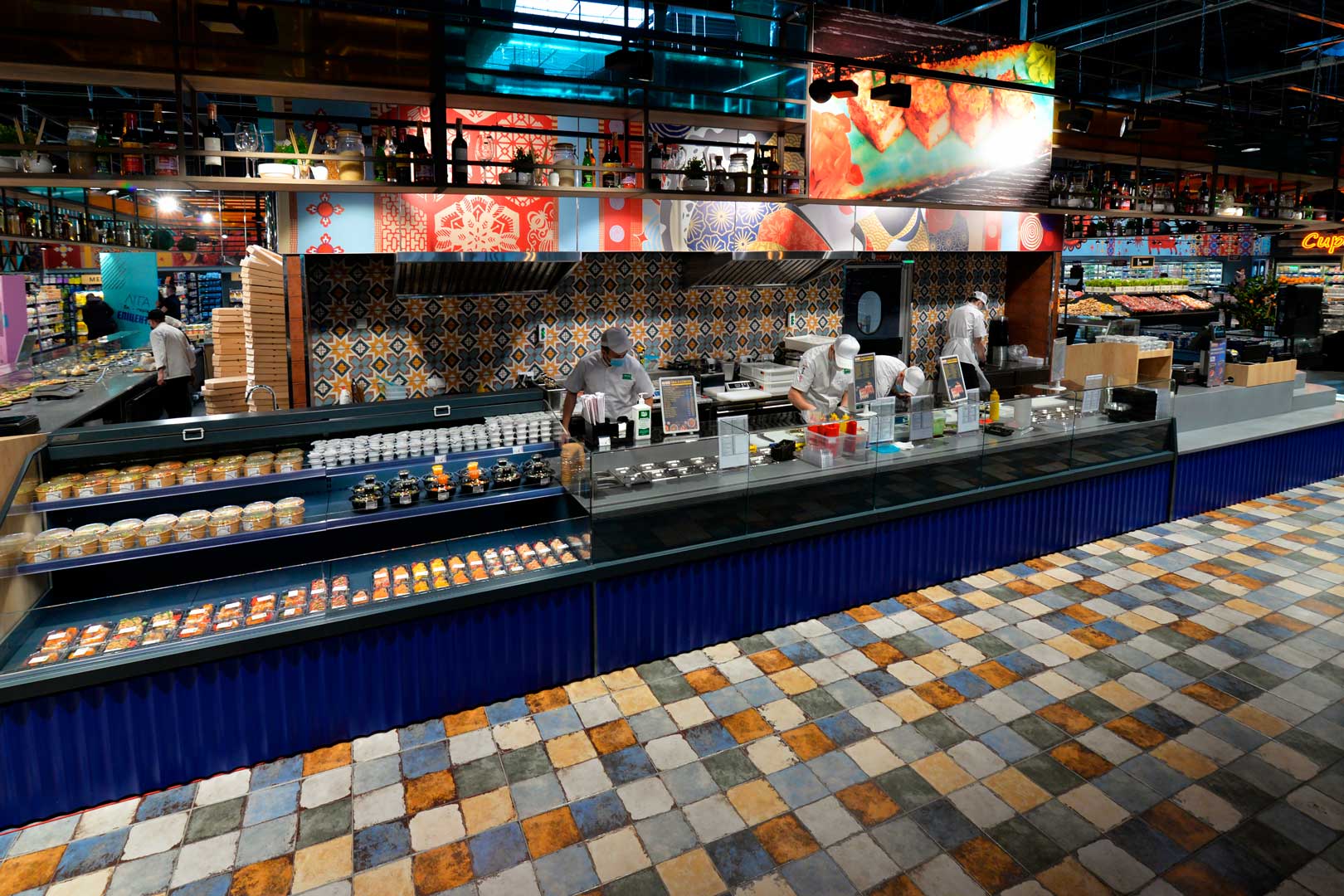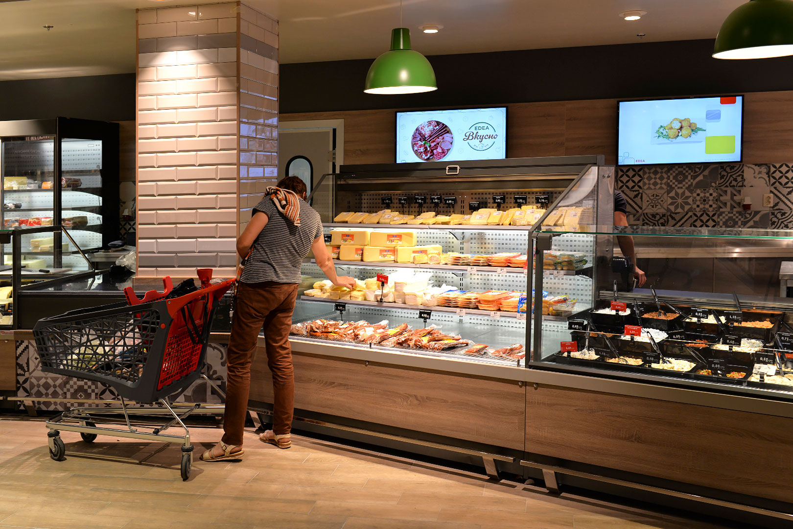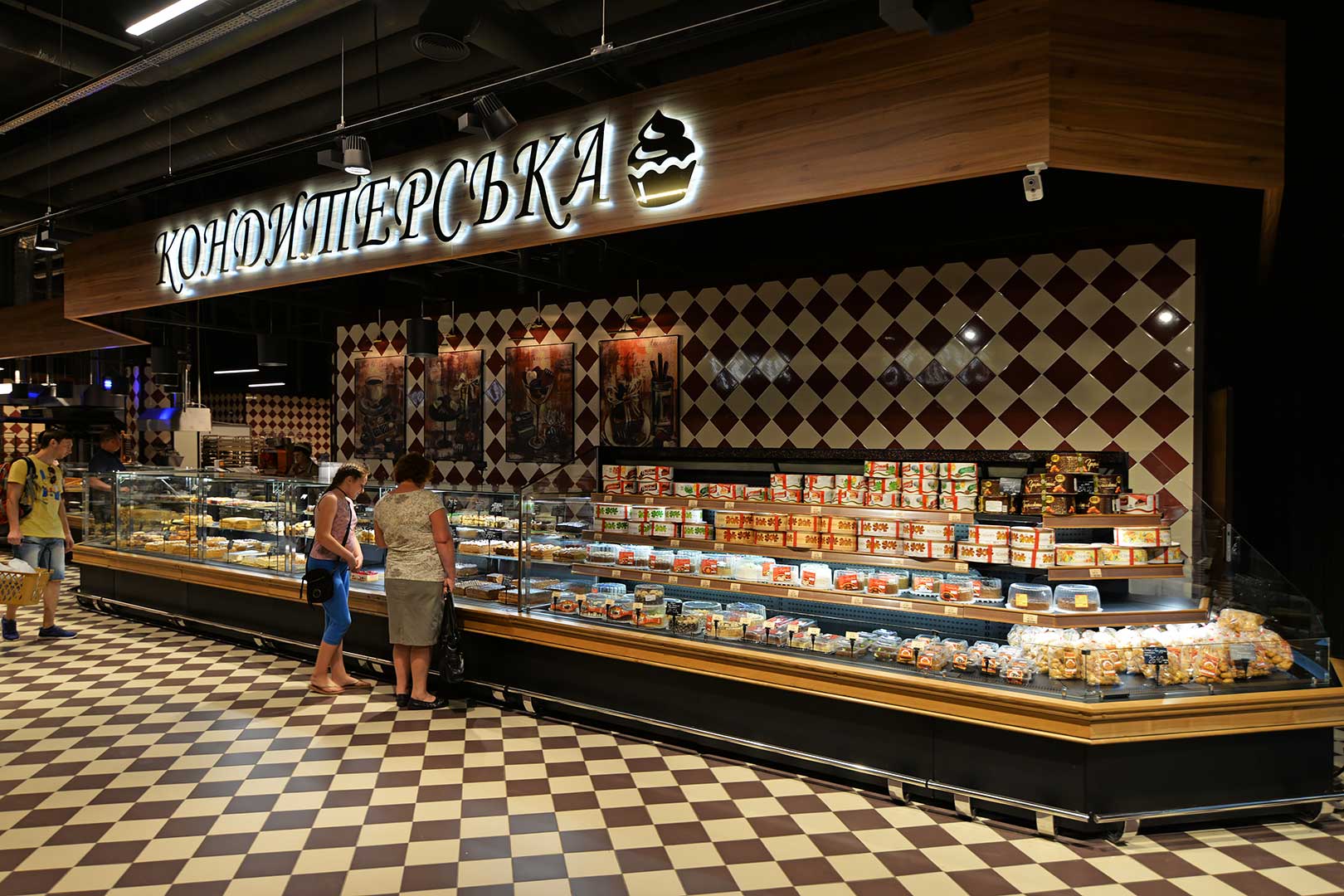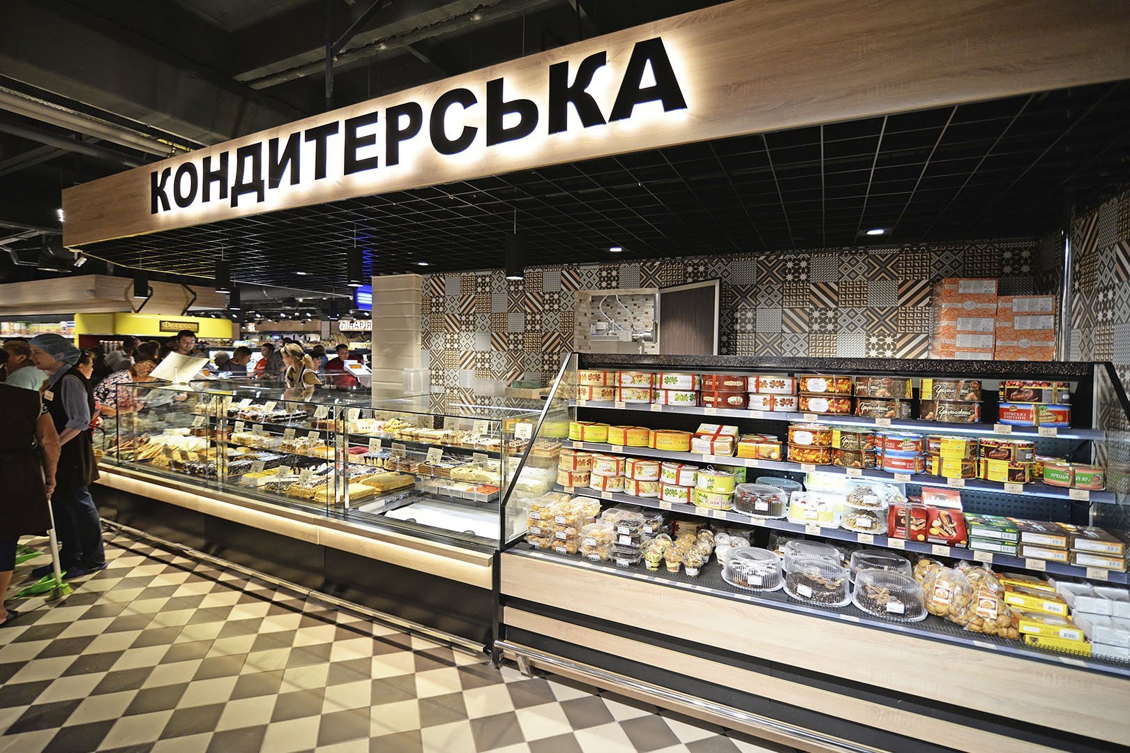דלפק שירות עצמי עם תצוגת סחורה בסגנון מסולסל, הכולל תאורת LED ואפשרות חיבור למערכת קירור מרחוק.