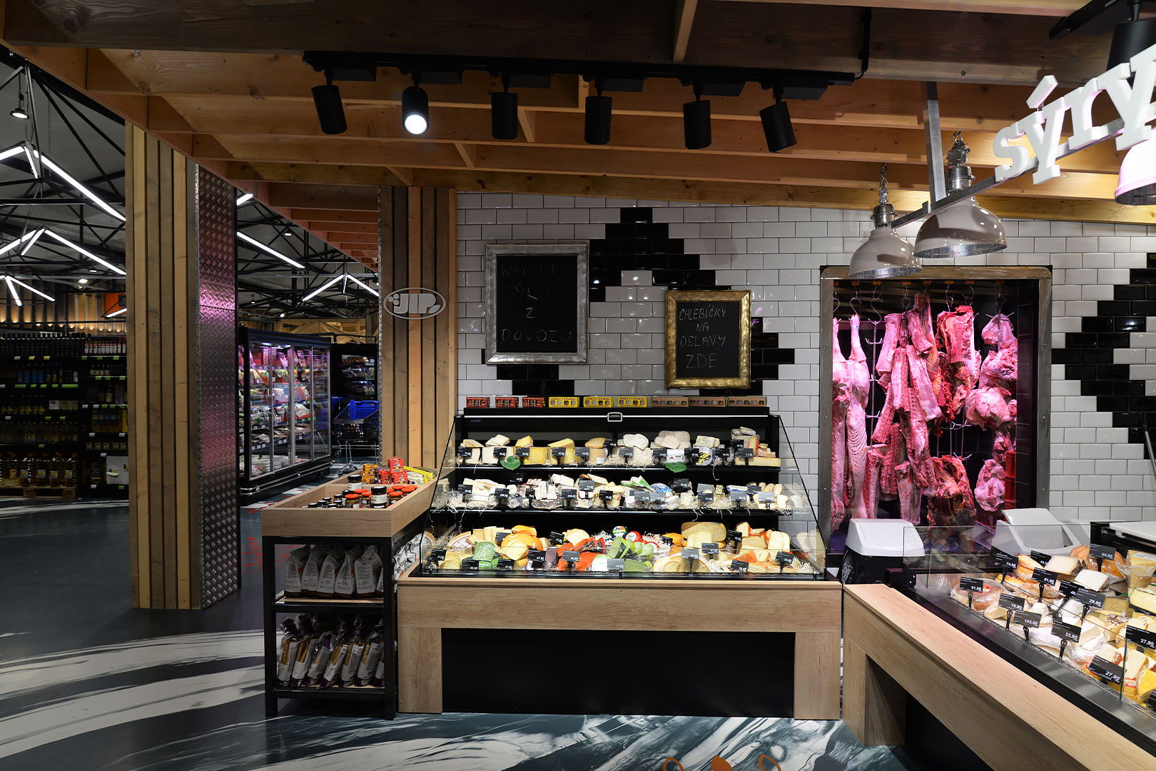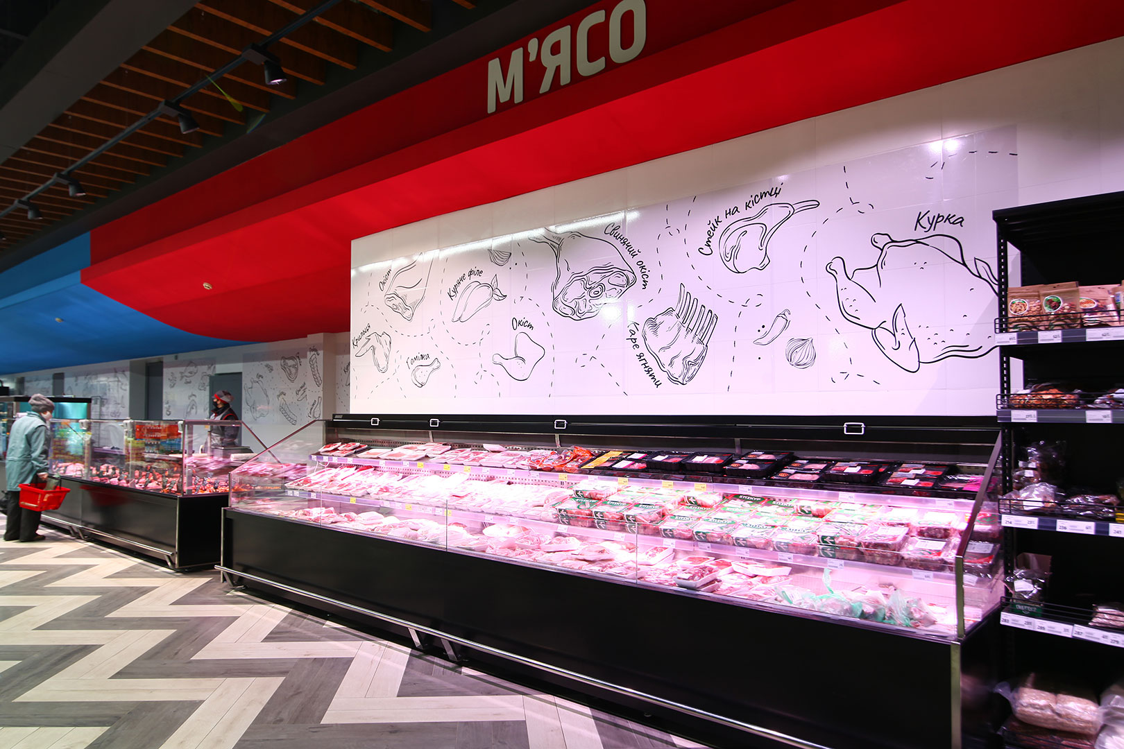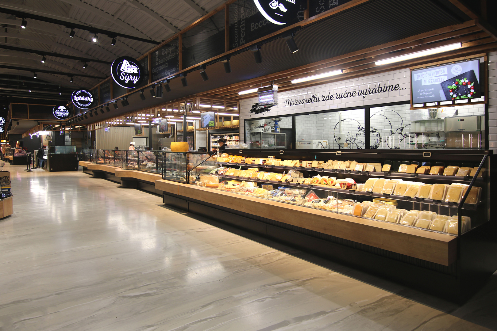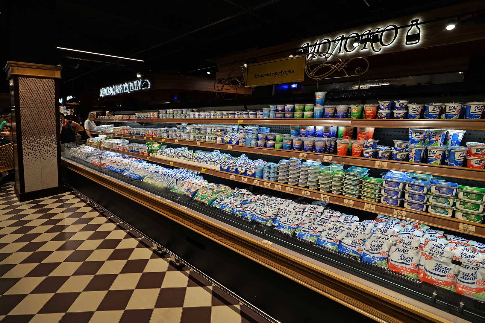 דלפק שירות עצמי עם תצוגת סחורה בסגנון מסולסל, הכולל תאורת LED ואפשרות חיבור למערכת קירור מרחוק.
