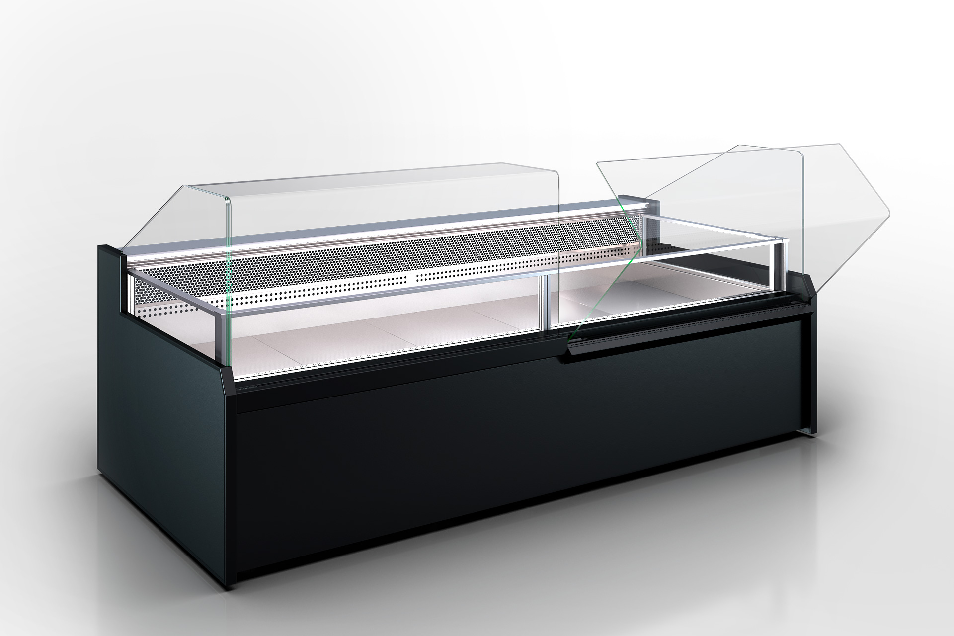 קירור לטמפרטורות נמוכות עם חלון פנורמי ללא מתלים, להבטחת נראות מקסימלית של מוצרים קפואים. המוצר מתחבר למערכת קירור מרחוק, עומק תצוגת הסחורה 850 מ"מ, מציע קירור דינמי, קיפול זכוכית קדמית ומאווררים חסכוניים באנרגיה.