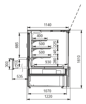 קונטר למוצרי קונדיטוריה, מיועד להצגה במעדניות עם תאורת LED ומערכת קירור דינמית.