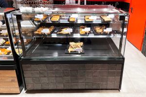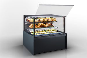 מתקן קצרפה מקצועי לחימום טבלאות חמות, עם שמירה על טמפרטורה בעזרת אלמנט חימום אינפרה-אדום מקרמיקה, עומק תצוגה של 900 מ"מ, מערכת גז-ליפט להרמת הזכוכית הקדמית, ומגשי תצוגה נשלפים.