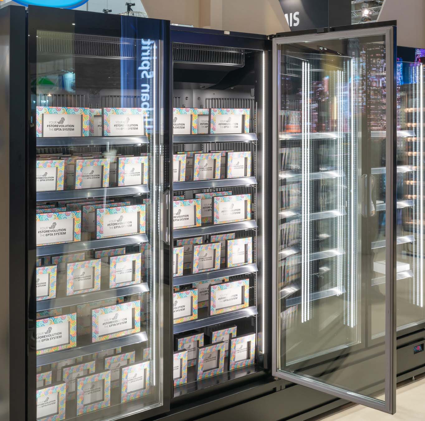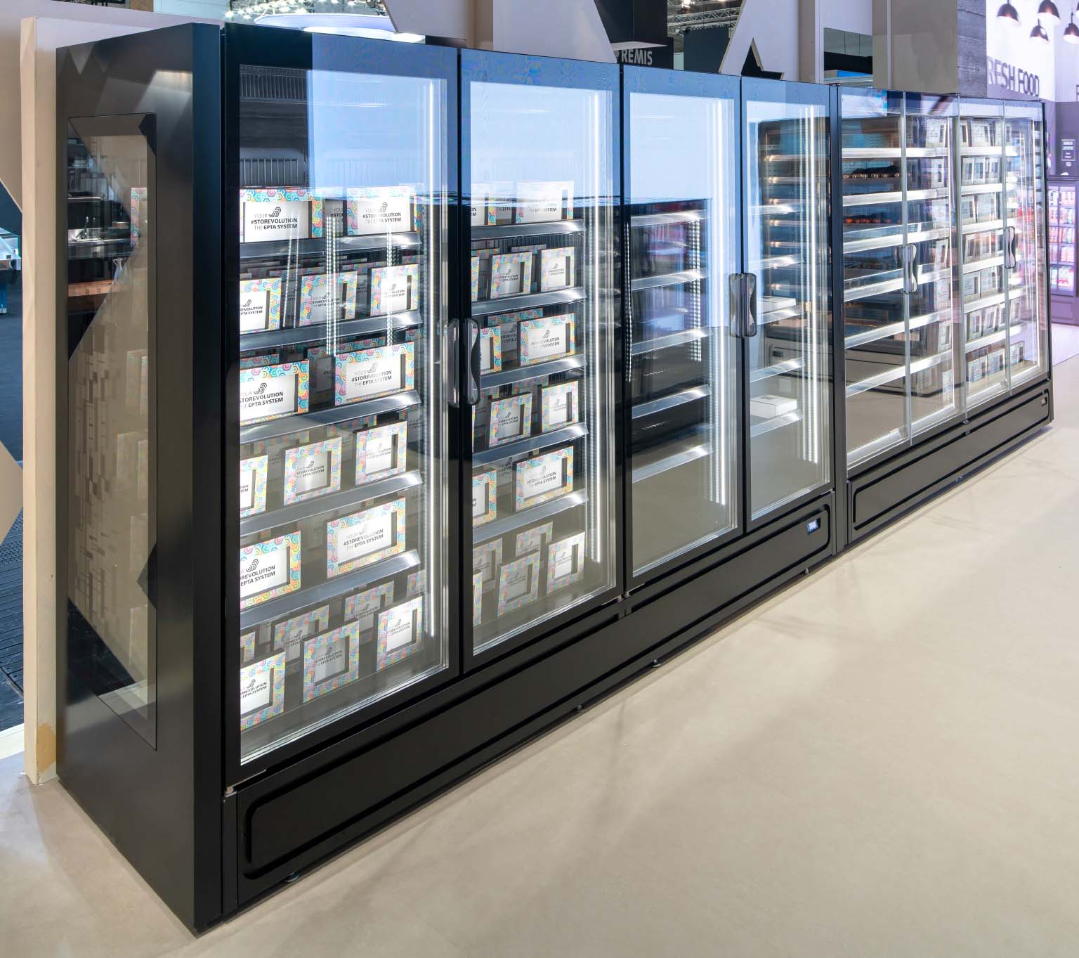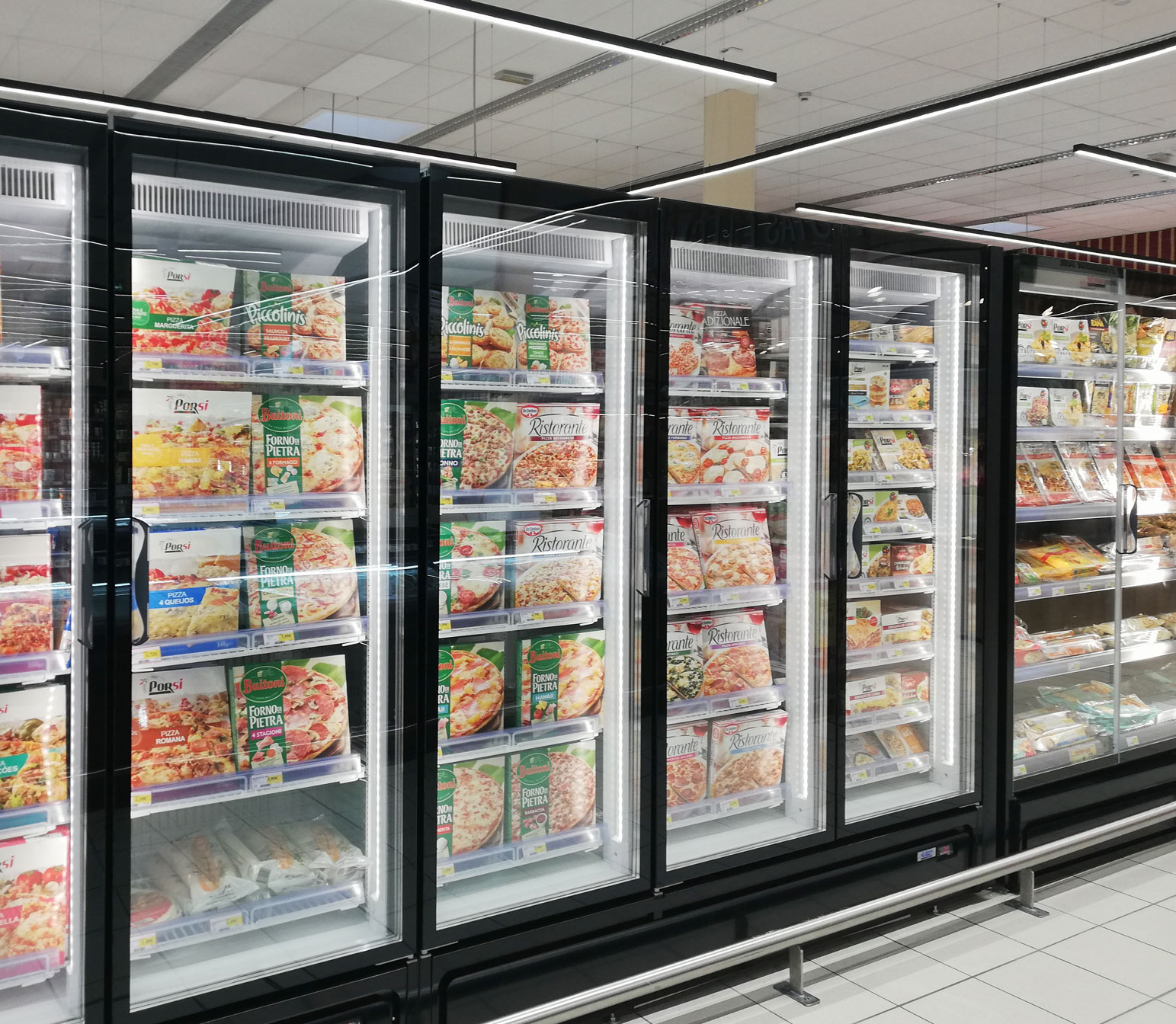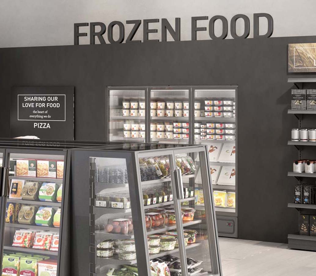 ארון קירור אנכי עם דלתות, הפועל באמצעות גז קירור פרופאן (R290), ומציג את המוצרים הקפואים בצורה מעולה. מתאים לכל שטחי המכירה ממינימרקטים ועד לסופרמרקטים גדולים.