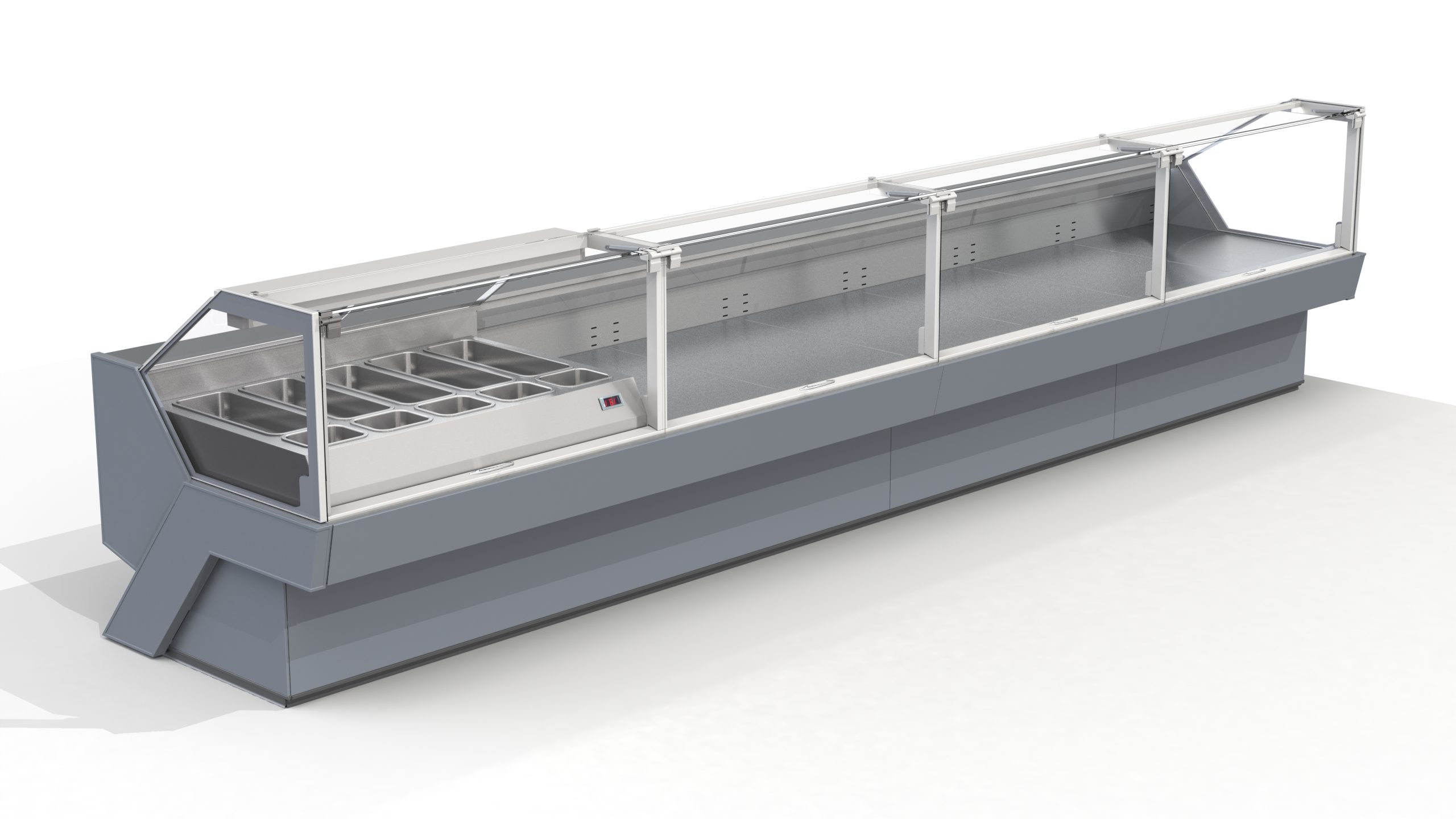 ויטרינה לקירור המאופיינת ביחס מעולה בין שטח תפוס לשטח תצוגה, עם גמישות גבוהה ותכנון שמותאם אישית. מתאימה לחנויות בינוניות וגדולות, ושימוש אידיאלי לשמירה והצגת מוצרי בשר טרי, גבינות ומוצרי מעדניה.