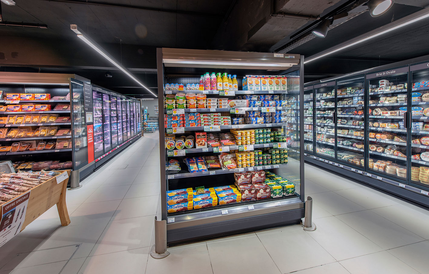 מותאם לסופרמרקטים ולהיפרמרקטים, העיצוב הייחודי מעניק תחושה של "קיר מוצרים" שמטשטש את נראות הארון. אפשרויות עיצוב בלתי מוגבלות הודות ל-2 גבהים, 3 עומקים, 4 אורכים ו-13 ארונות לסוף אי.