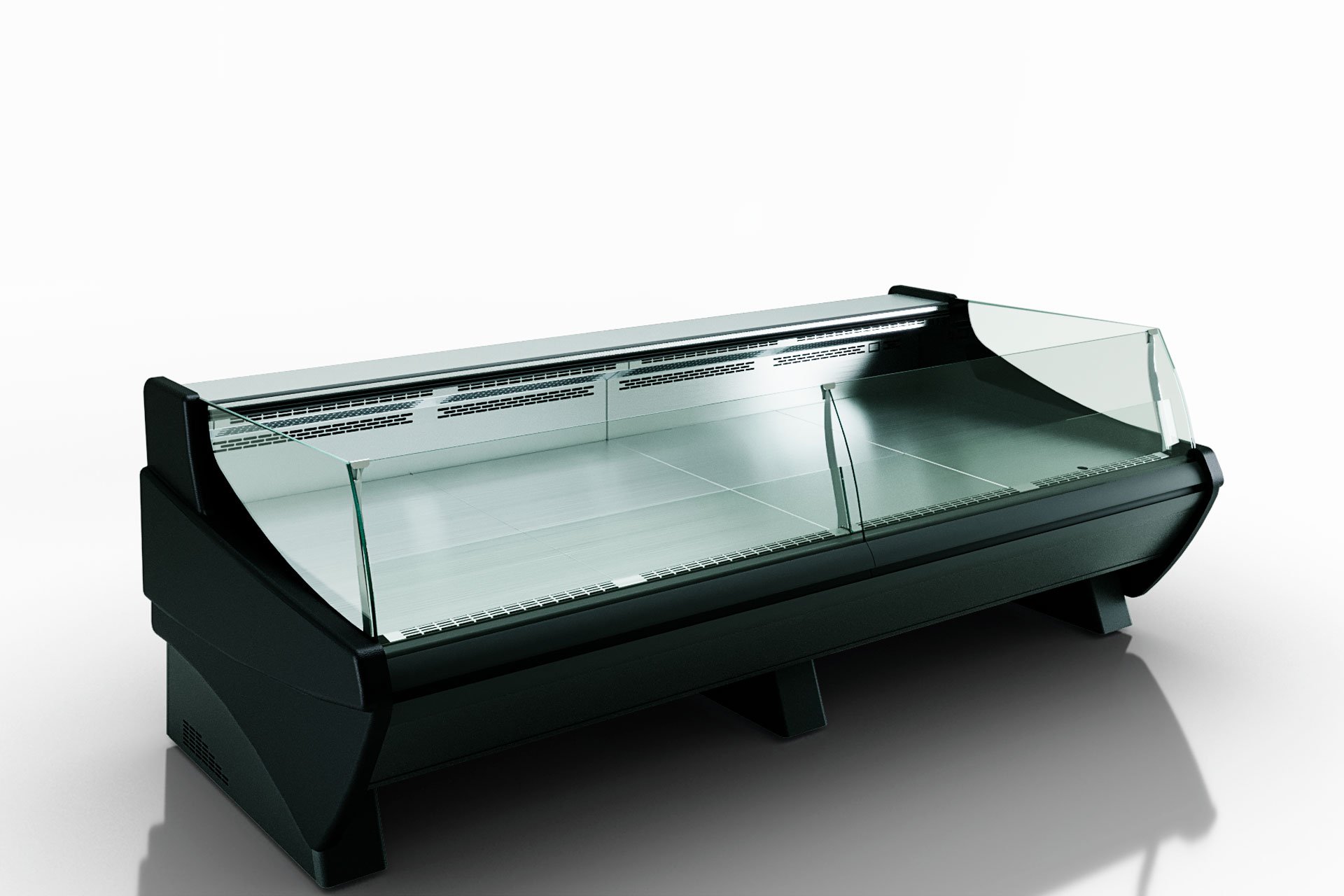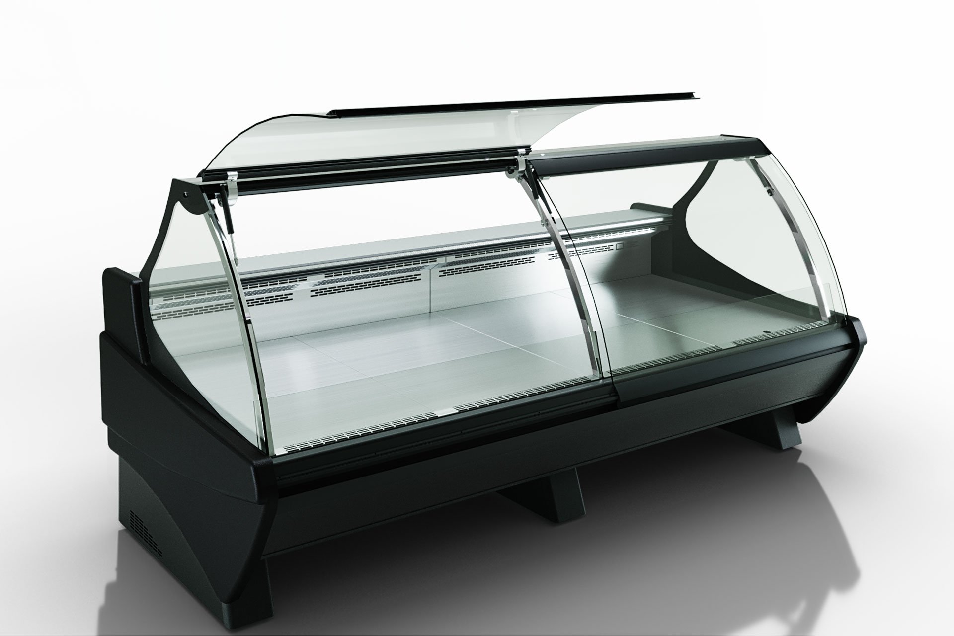 דלוע בעל מבנה רדיאלי ועומק מרבי להצגת מוצרים, זמין בגרסת זכוכית לשירות עצמי.