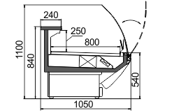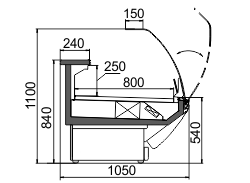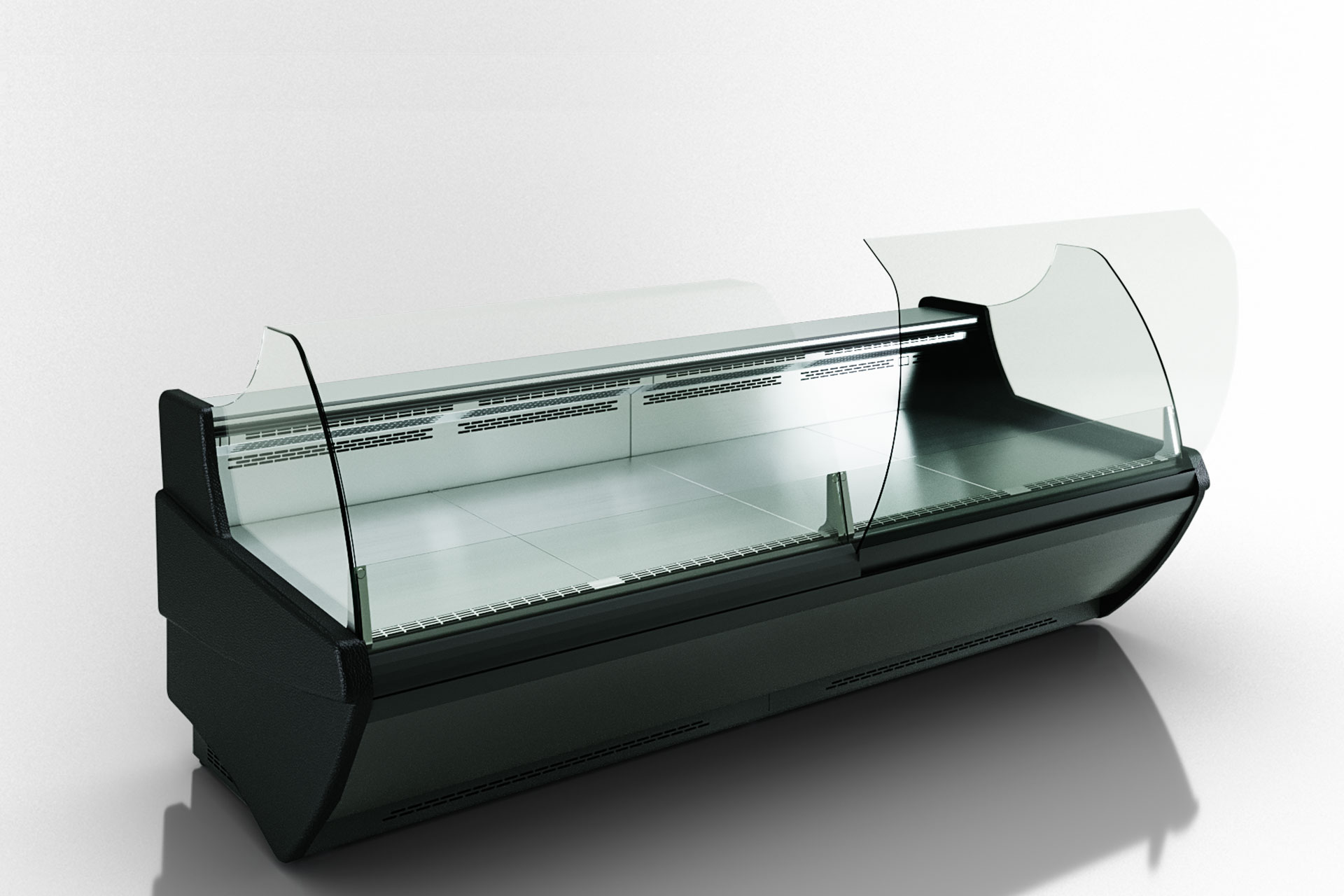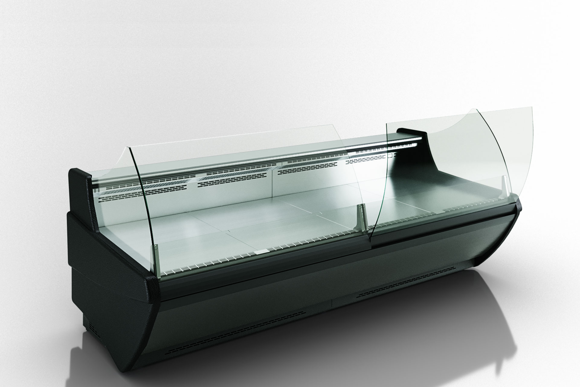 השולחן עם זכוכית חזית בהירה. מתחבר למערכת קירור מרחוק או מותאם להתקנה כ-plug-in. עומק תצוגת הסחורה 800 מ"מ, קירור דינמי והרמה ואחיזה של הזכוכית.