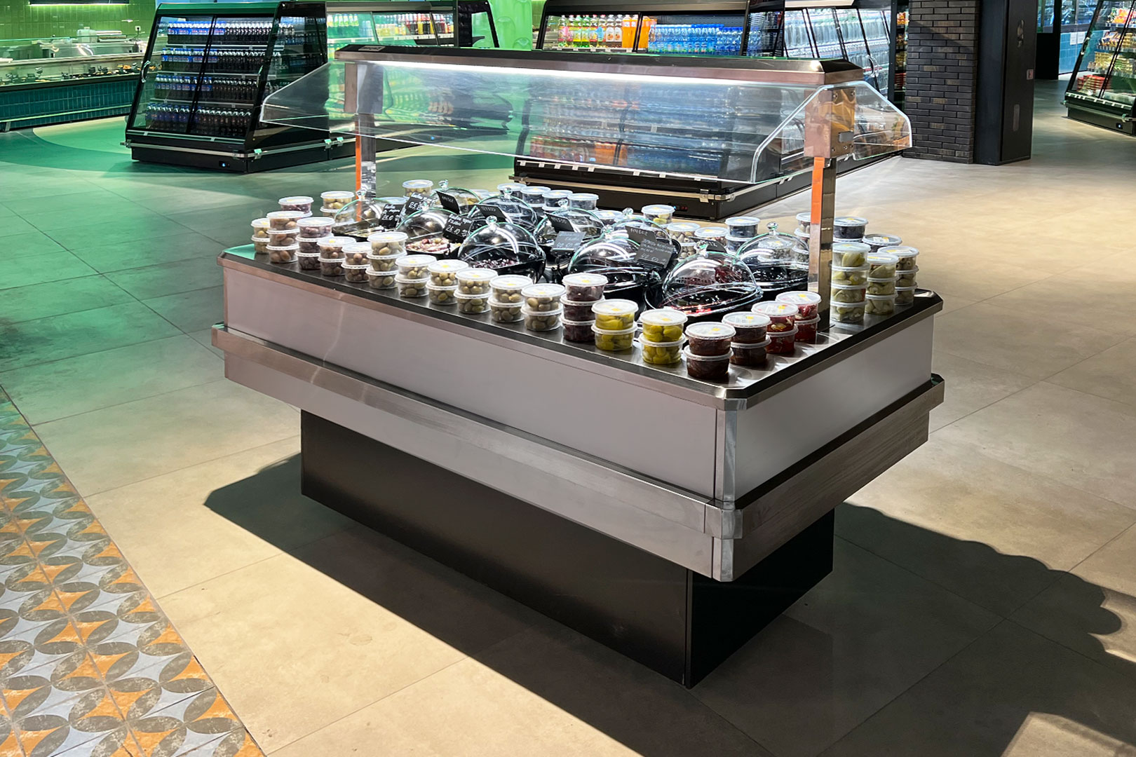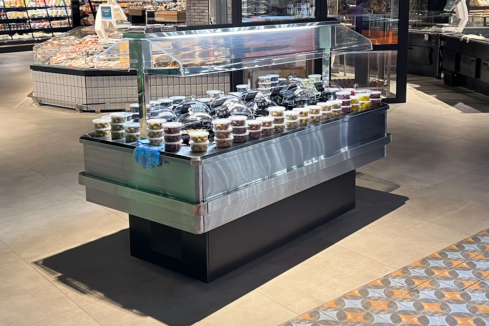 מקרר מעדניה מתקדם זה מיועד למכירת חמוצים, המיוצר באיכות גבוהה ומציע חללי תצוגה מותאמים לפי דרישות הלקוח.